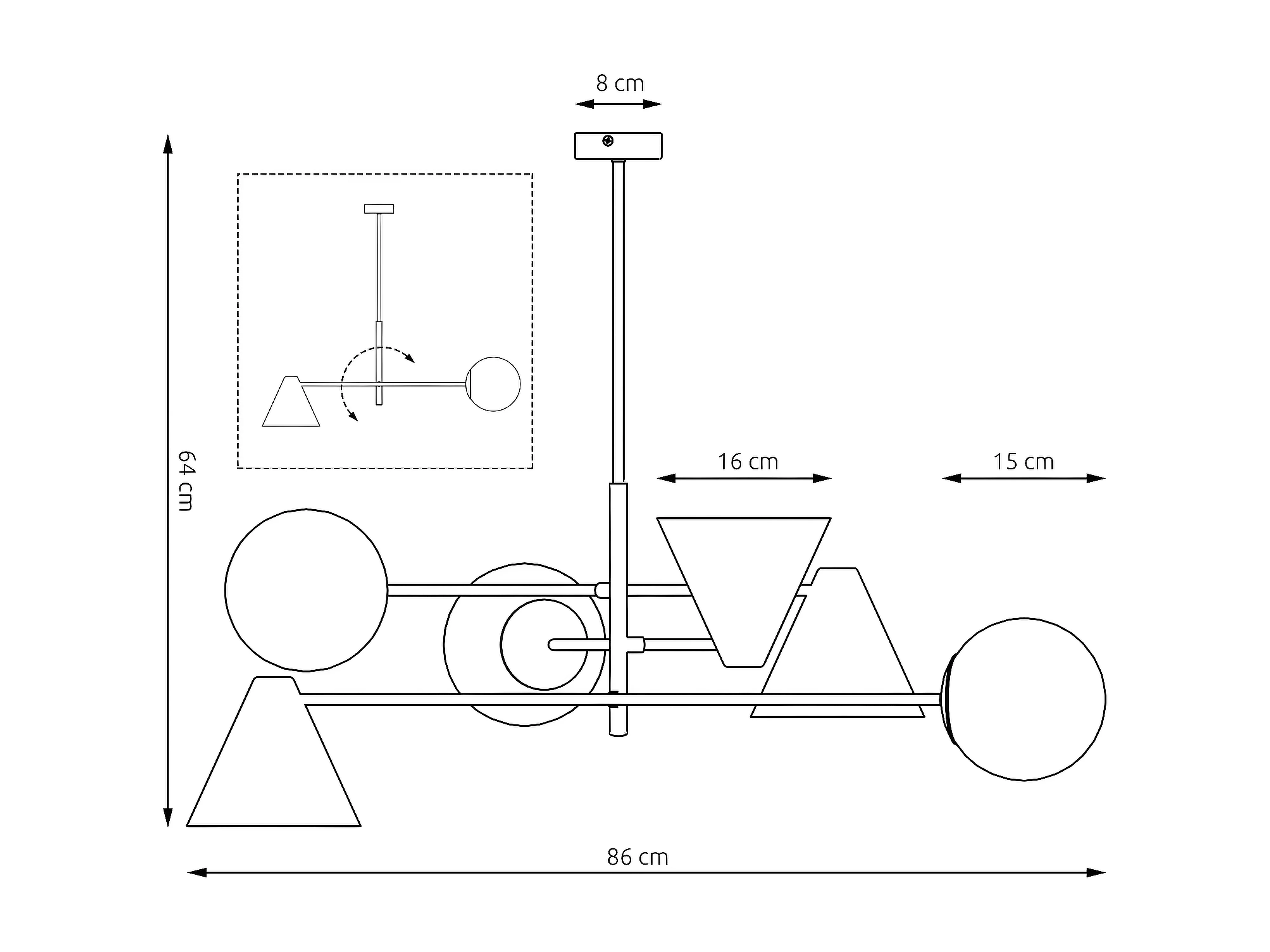Candeeiro de teto em tecido e metal com altura ajustável D40xA30-70 cm preto e prateado - TAIRON