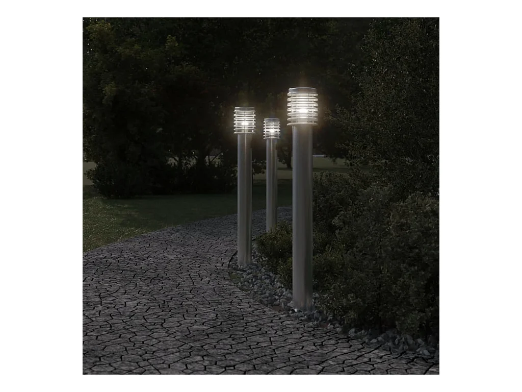 Candeeiros de pé exteriores 3 unidades prateados 110 cm aço inoxidável prateado 02_0042556