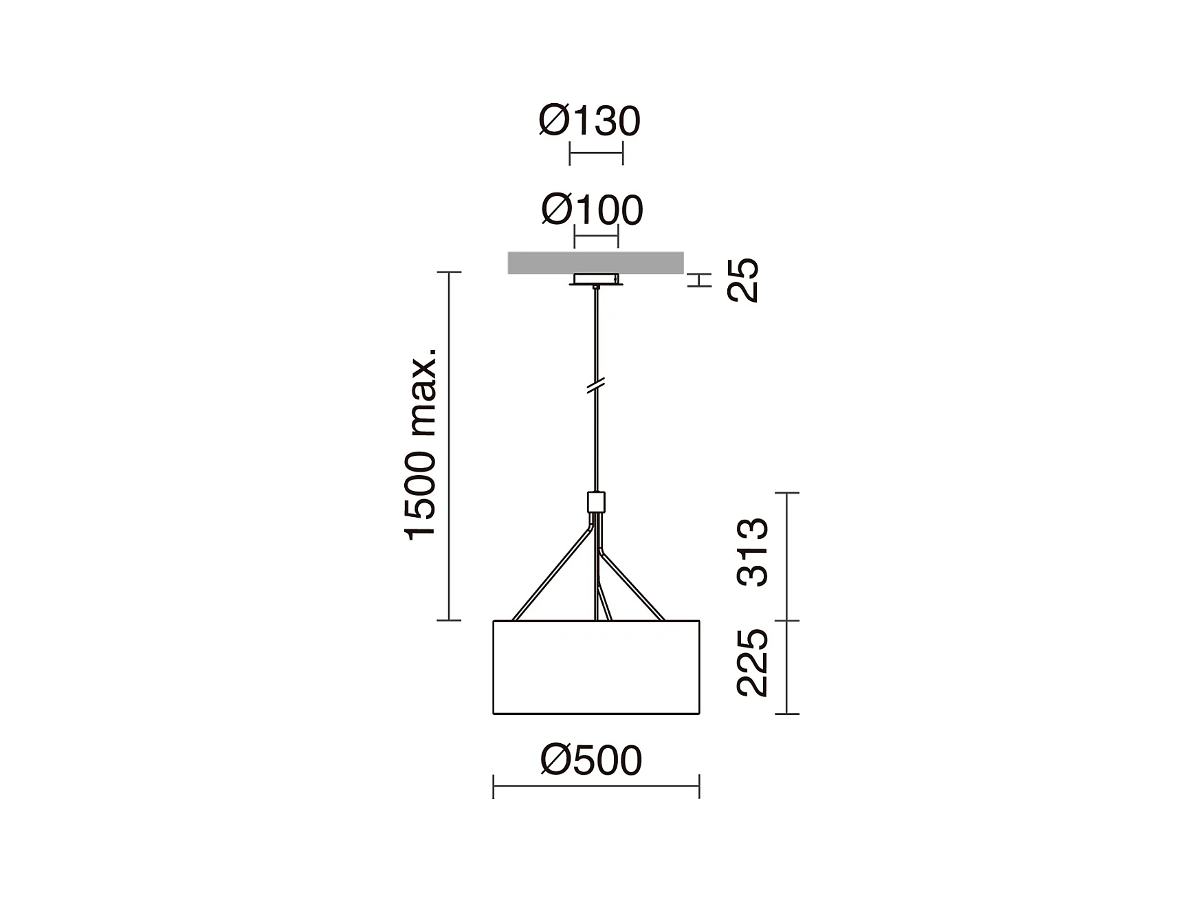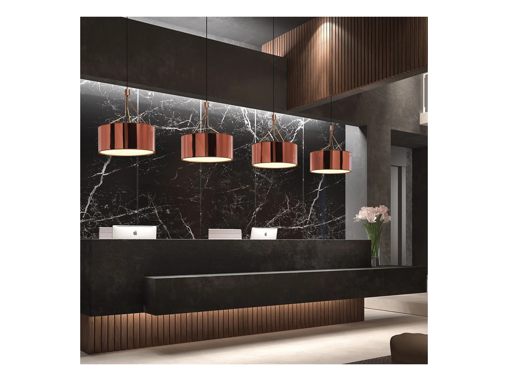 Candeeiro de teto DIAGONAL estilo moderno - A 150 cm - 3x E27 13W - abat-jour sintético ø50 cm - aço e cobre - IP20 - interior