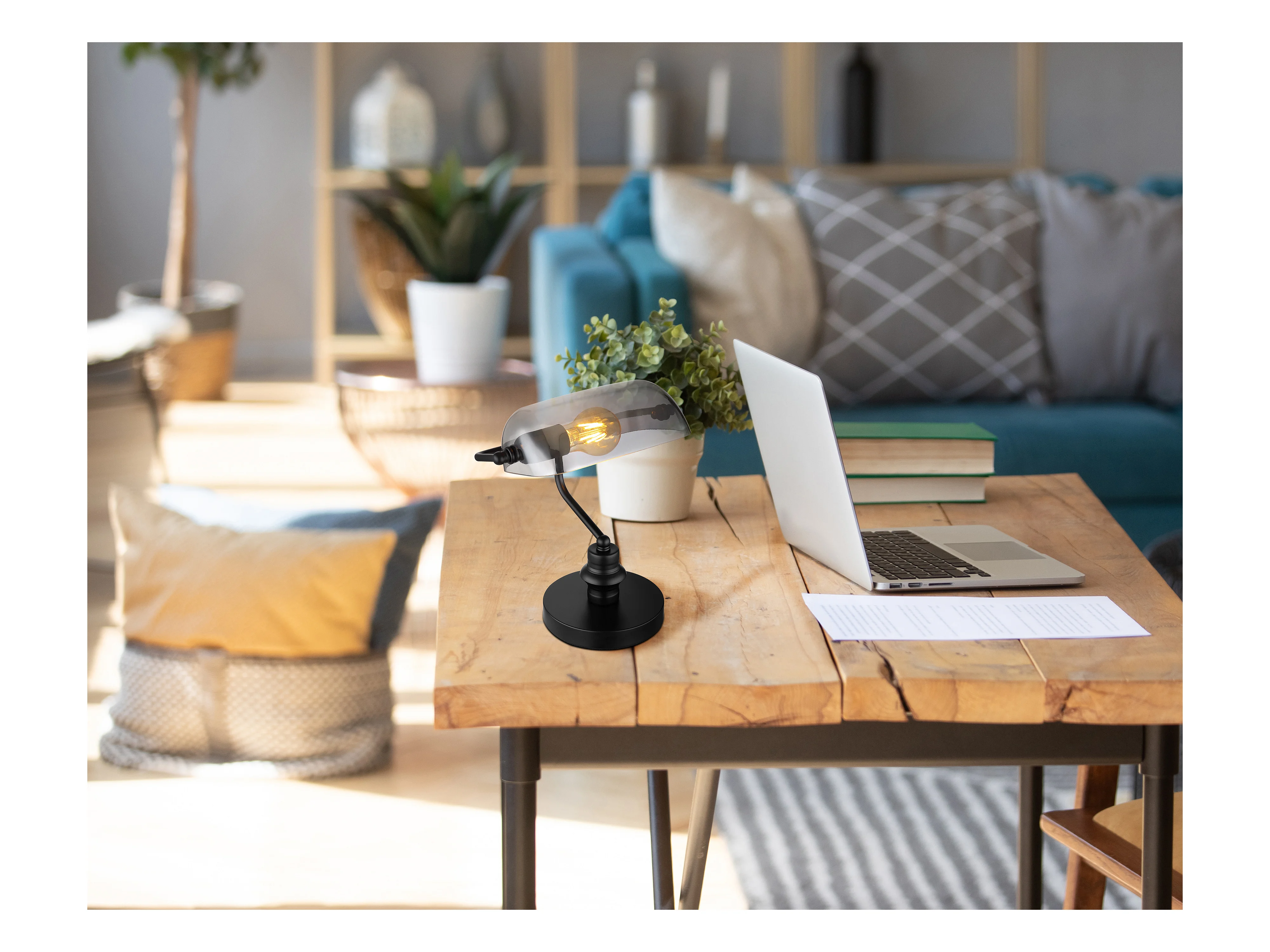 Candeeiro de mesa LED Beneito Faure – 5W, Luz quente, Para secretária, leitura e cabeceira, Carregamento sem fios, Cabeça ajustável – Cor preta