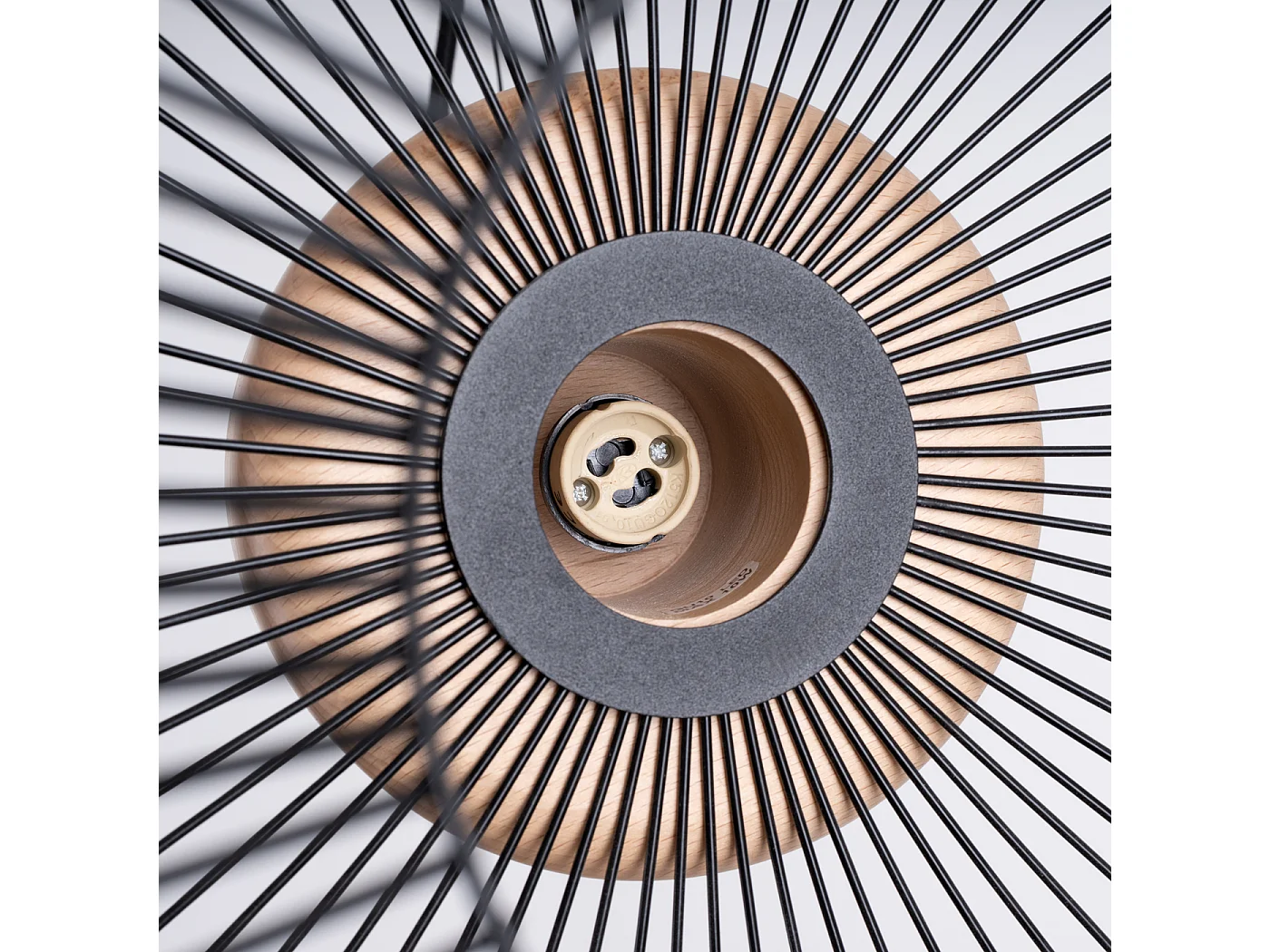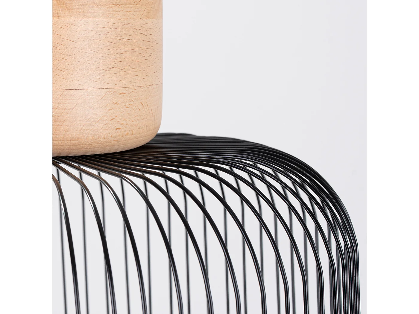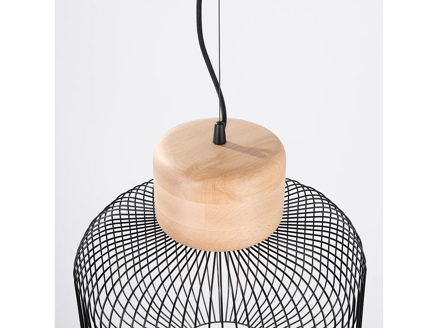 Candeeiro suspenso Gabbia industrial, aço/madeira - 1 lichtbronnen - L.35 x H.183 cm - madeira preta/natural