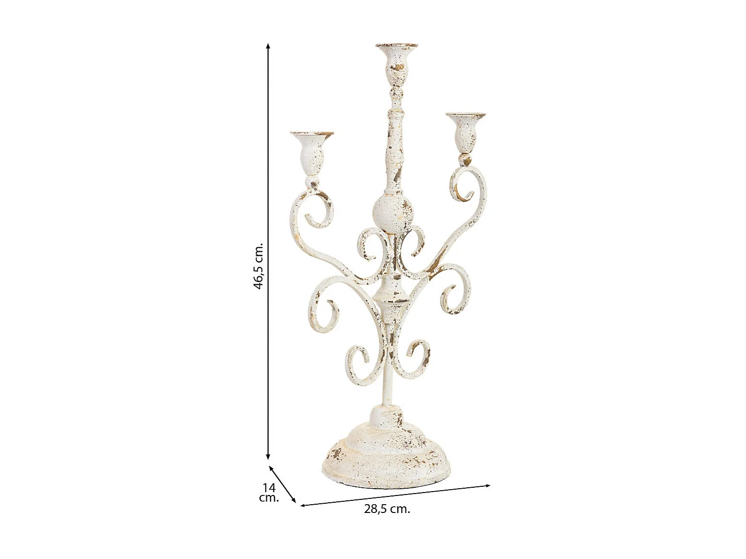 Candelabro em metal 3 velas envelhecidas 28,5x14x46,5h cm