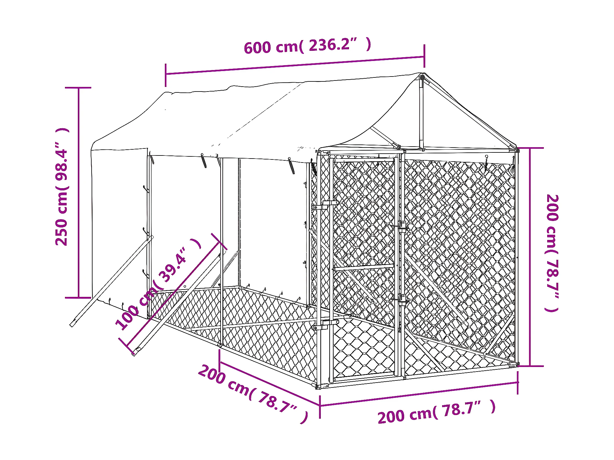 Canil de exterior em aço galvanizado 2x2x1 m PT763756