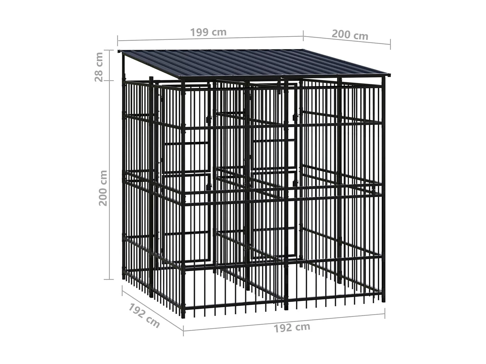 Canil gaiola exterior animal pac com teto para cães aço 7,37 m² preto 02_0041765