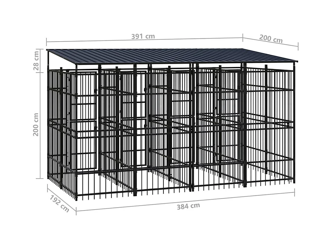 Canil gaiola exterior animal pac com teto para cães aço 7,37 m² preto 02_0041765