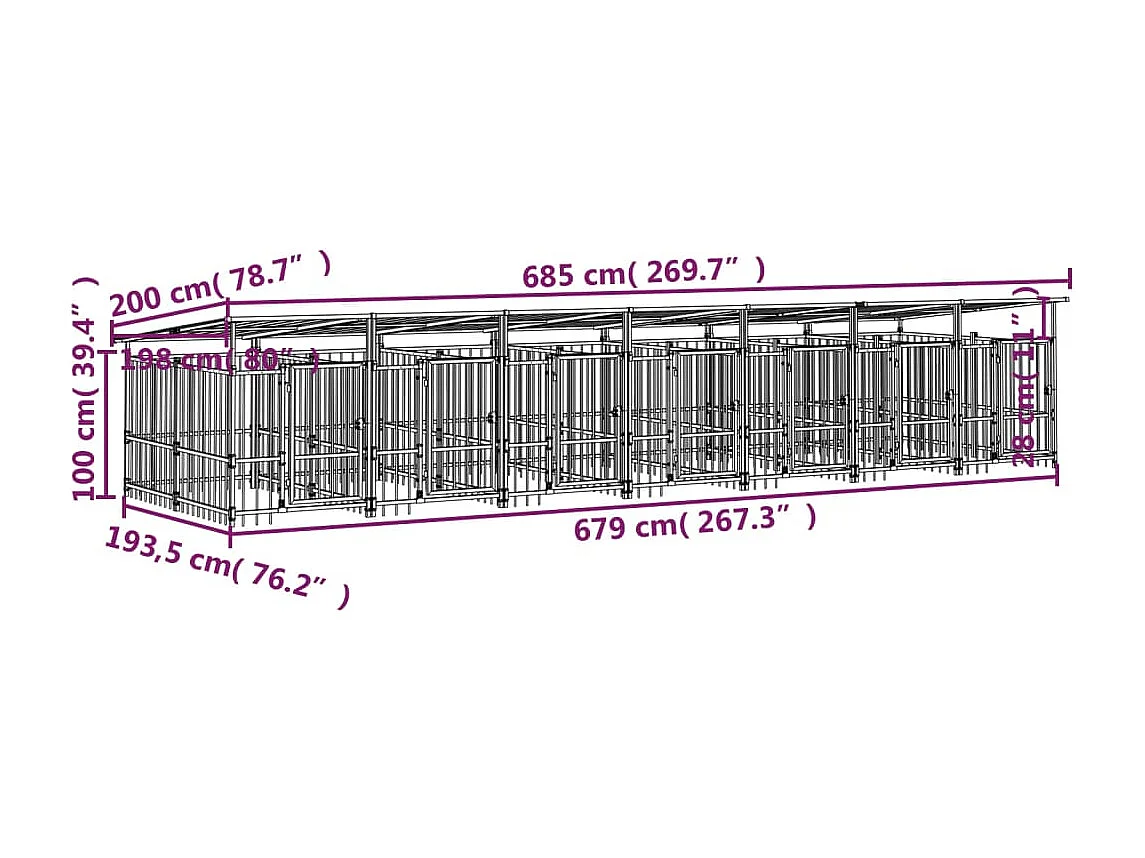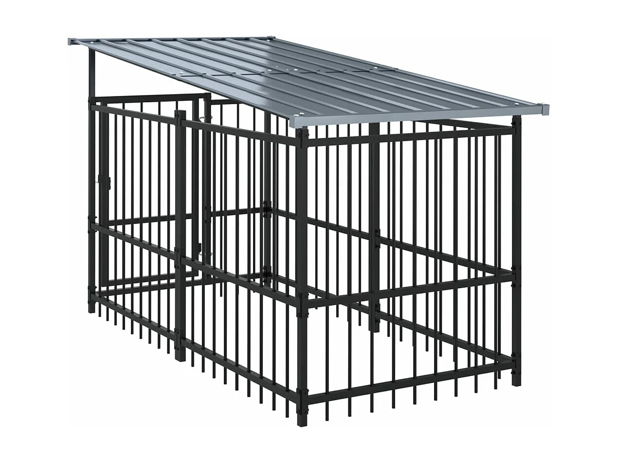 Canil gaiola para animais ao ar livre com teto para cães aço 13,14 m² preto 02_0041739