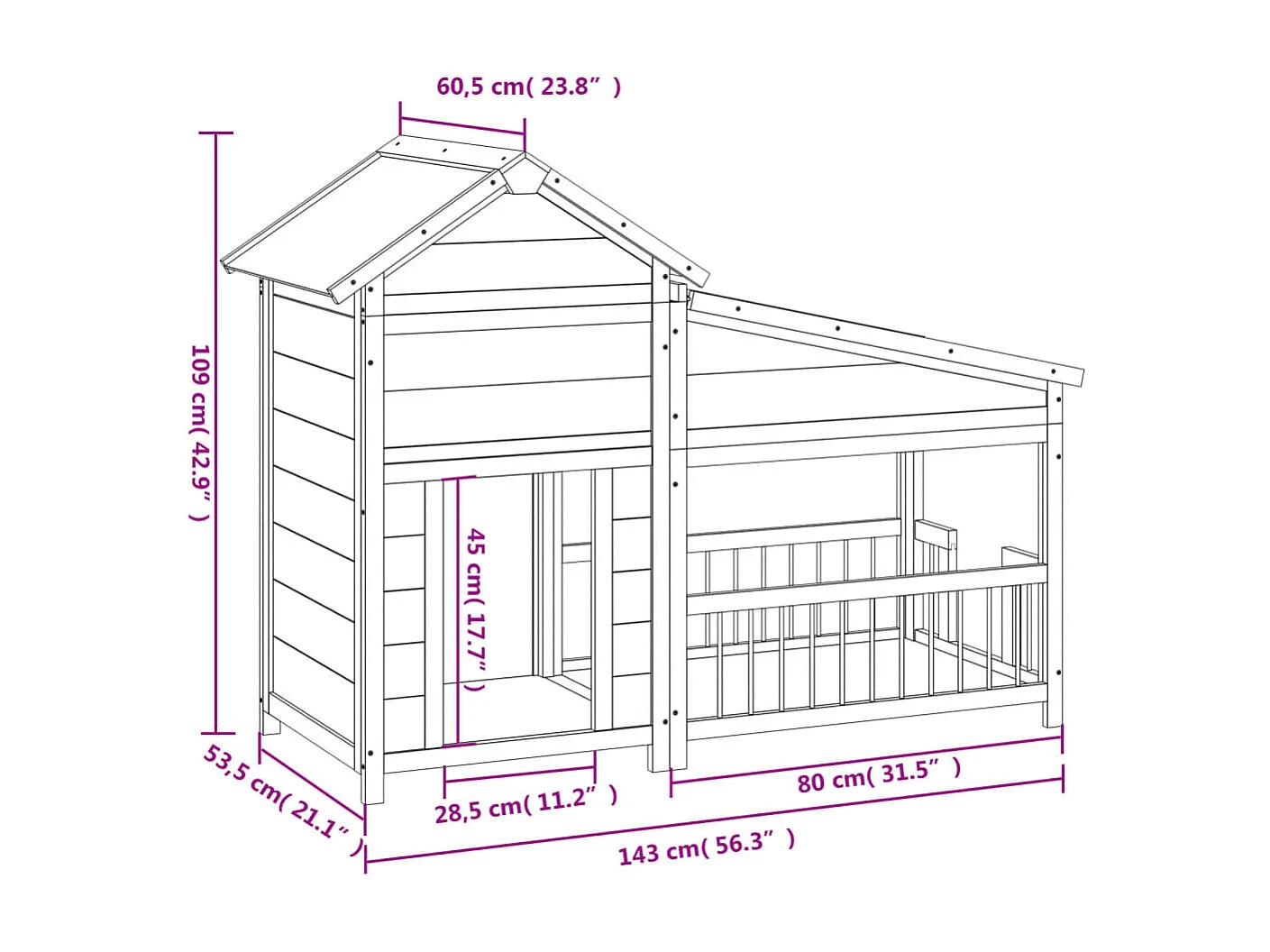 Casinha de cachorro XL em madeira maciça com terraço 3716051
