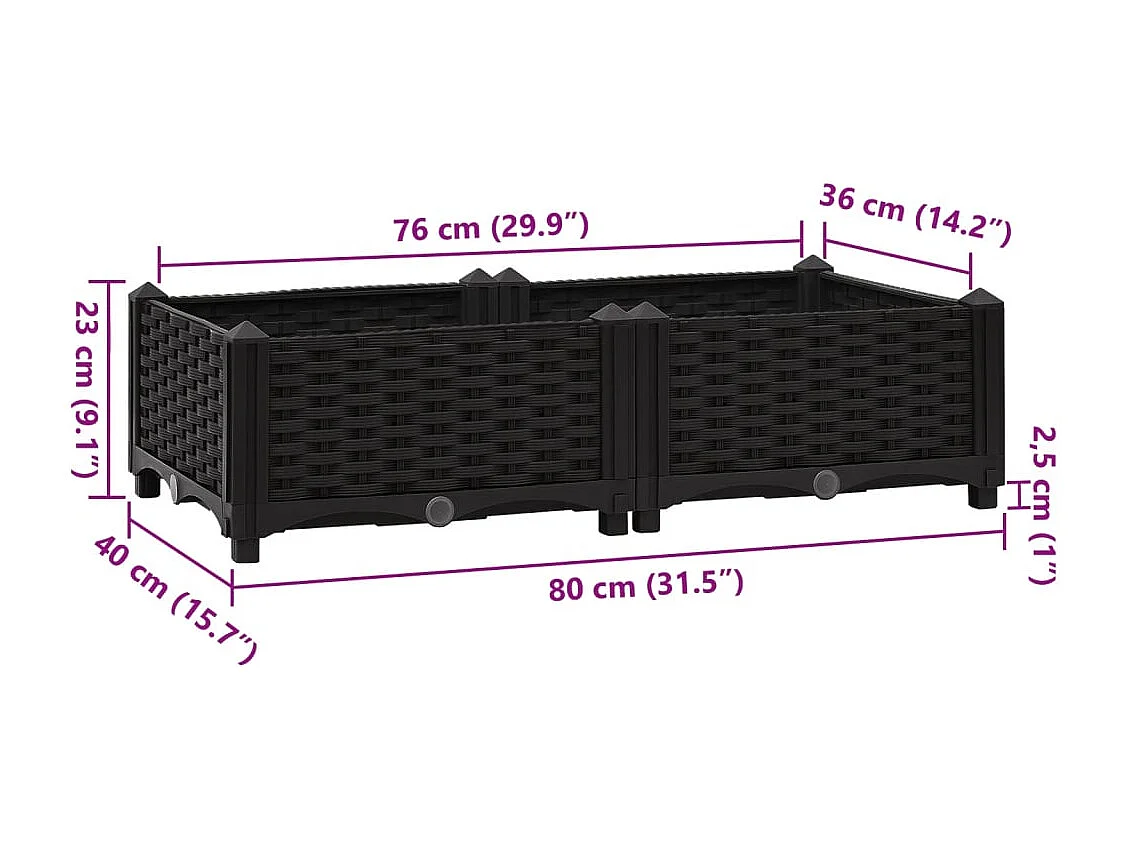 Plantador de canteiro elevado plantas flores jardim 80 x 40 x 23 cm polipropileno 02_0000944