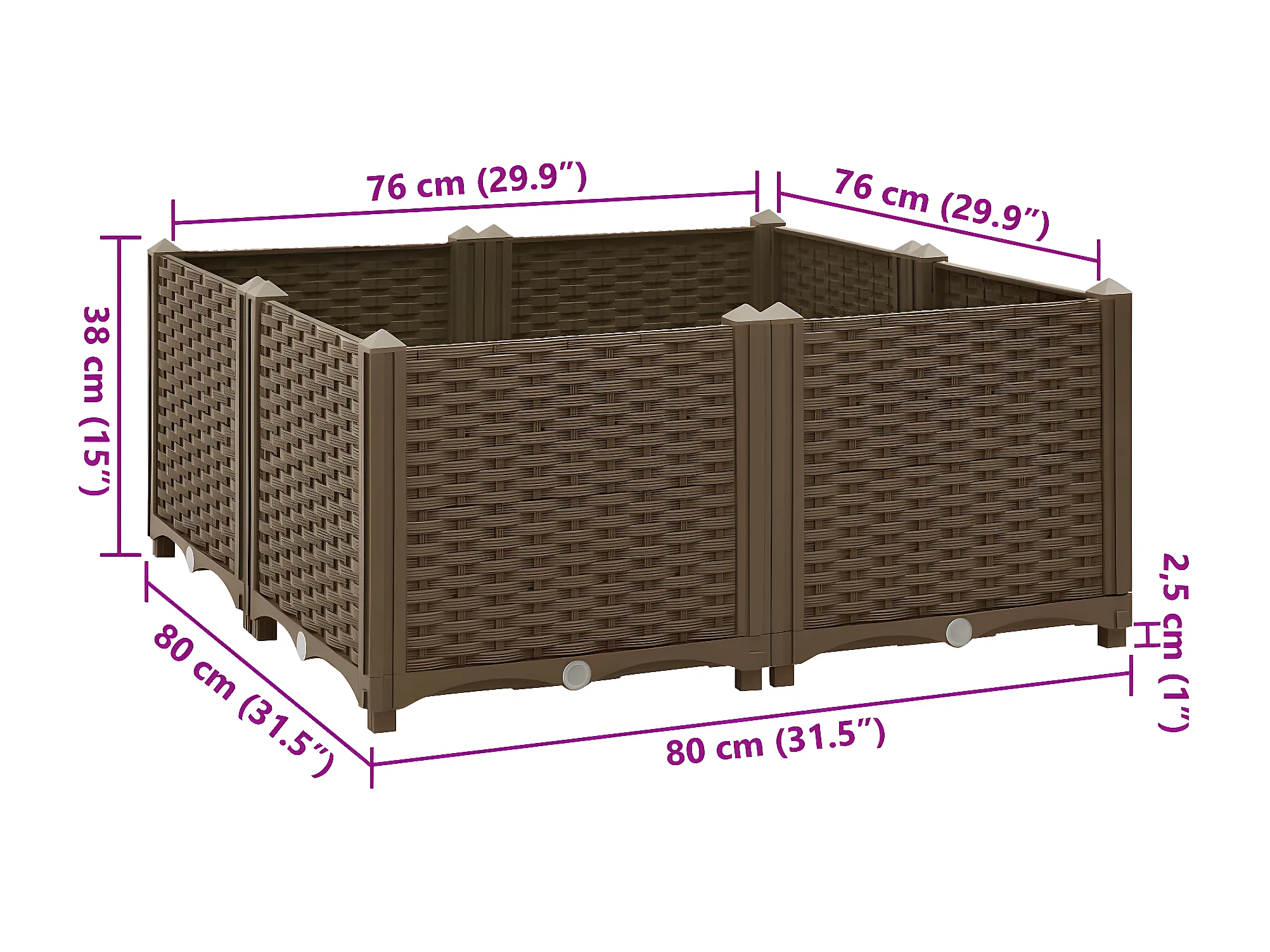 Plantador de canteiro elevado plantas flores jardim 80 x 80 x 38 cm polipropileno marrom 02_0000957
