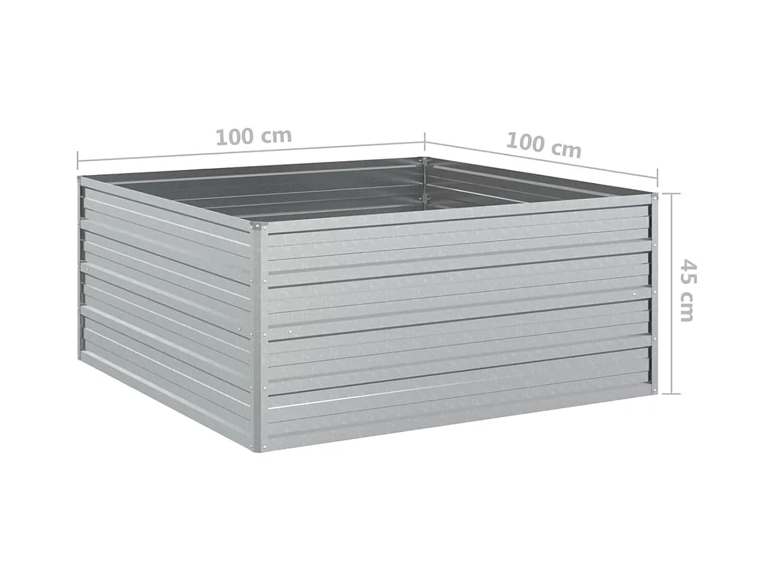 Canteiro elevado jardim 100x100x45 cm aço galvanizado prateado