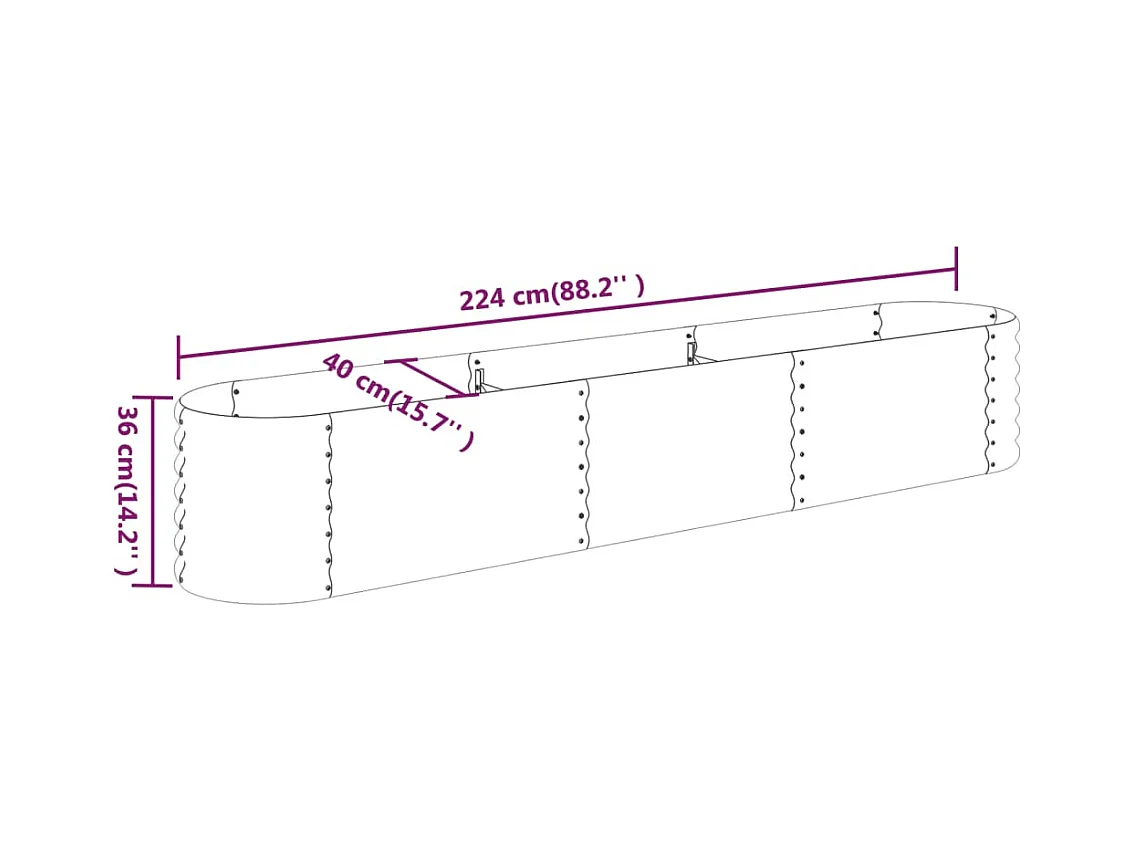 Canteiro elevado jardim 224x40x36cm aço revestido a pó prateado