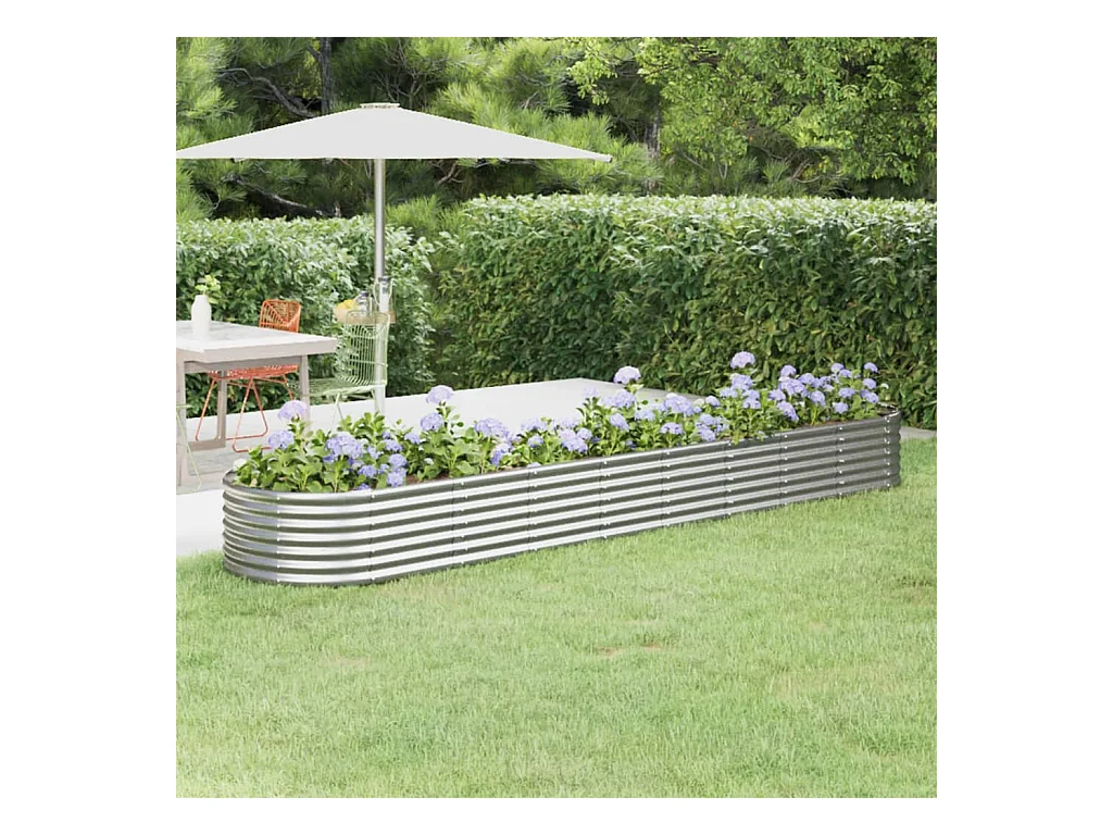Canteiro elevado jardim 512x80x36cm aço revestido a pó prateado PT910405