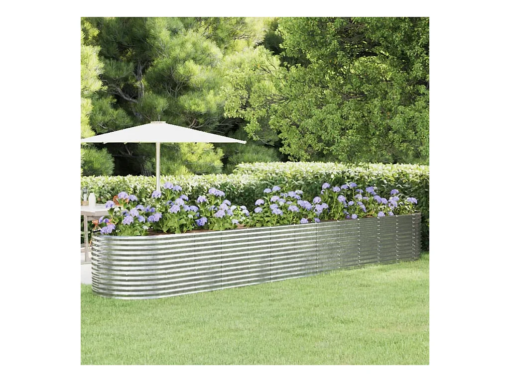 Canteiro elevado jardim 368x80x68cm aço revestido a pó prateado PT257281