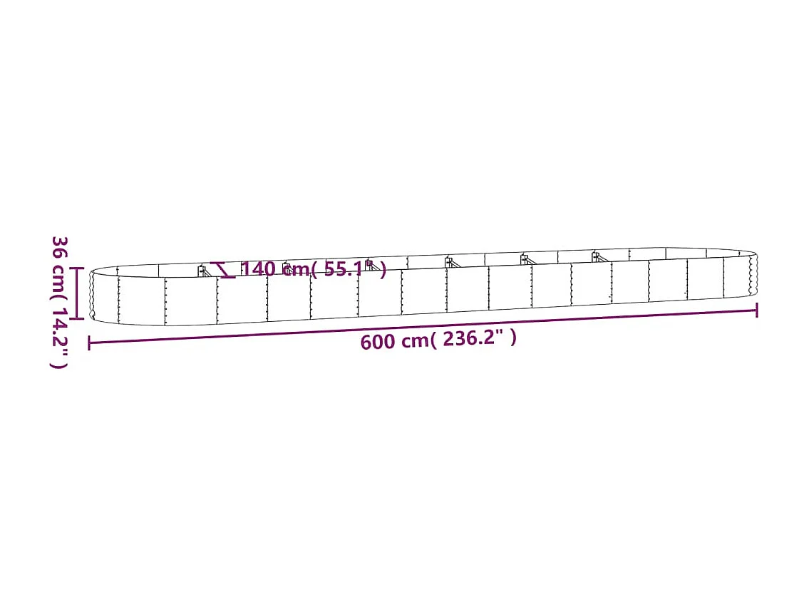 Canteiro elevado jardim 600x140x36 aço revestido a pó prateado
