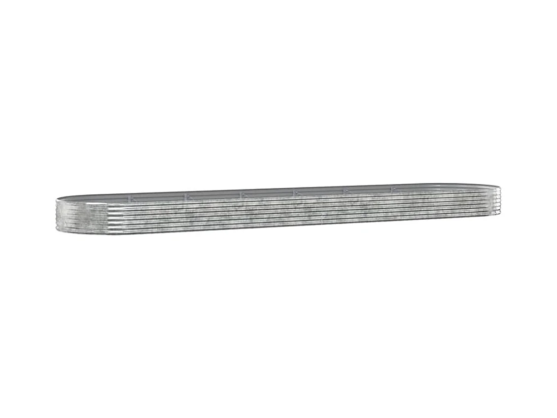 Canteiro elevado jardim 368x80x36cm aço revestido a pó prateado PT426707