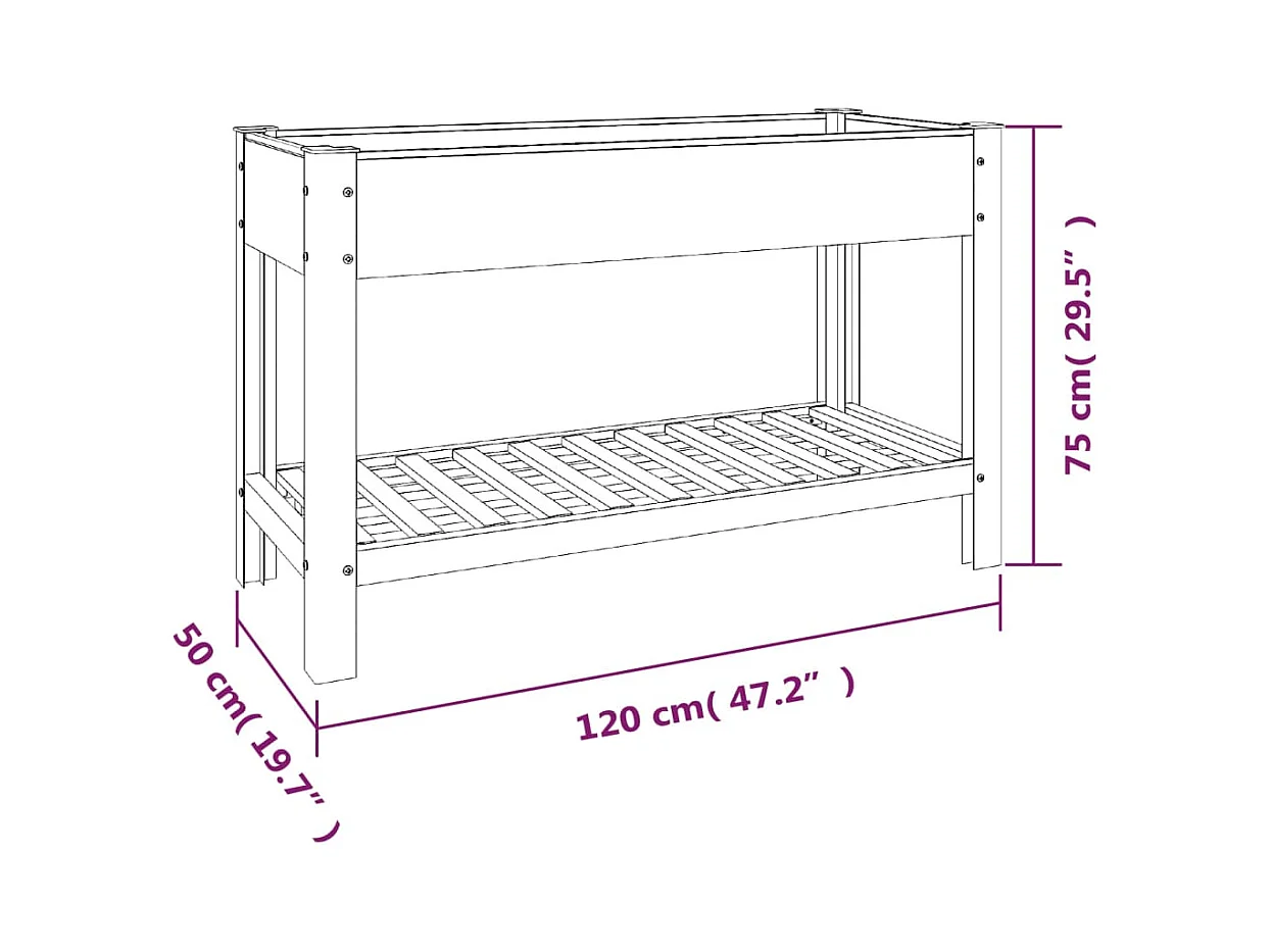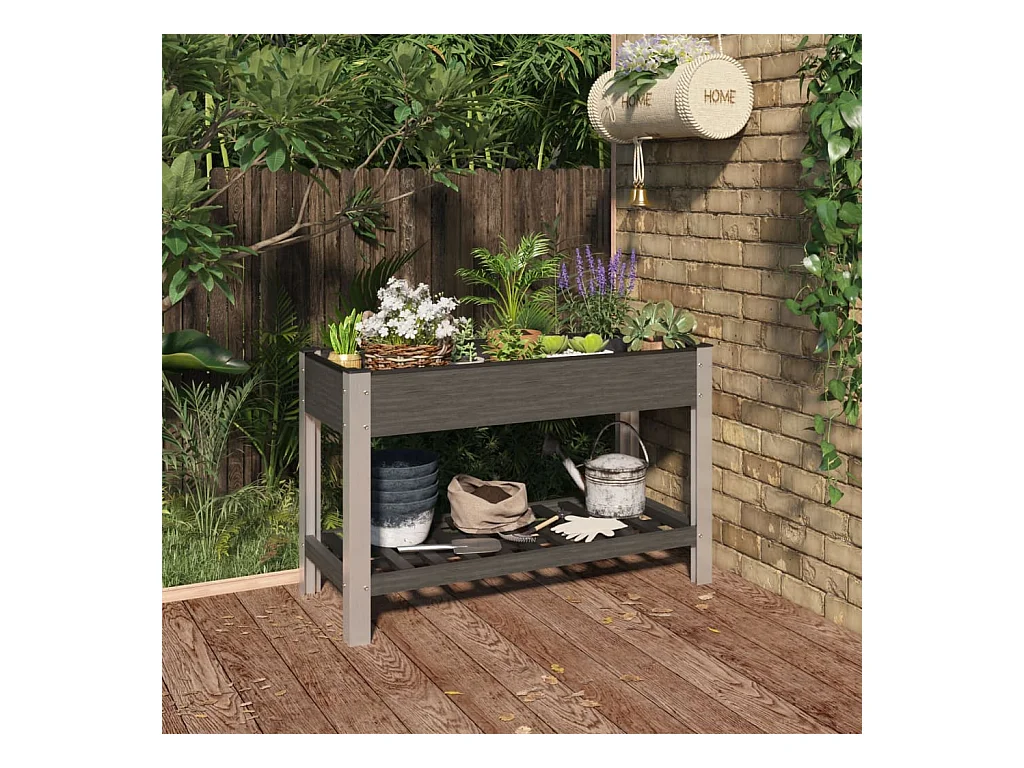 Canteiro elevado jardim c/ prateleira 120x50x75 cm WPC cinzento