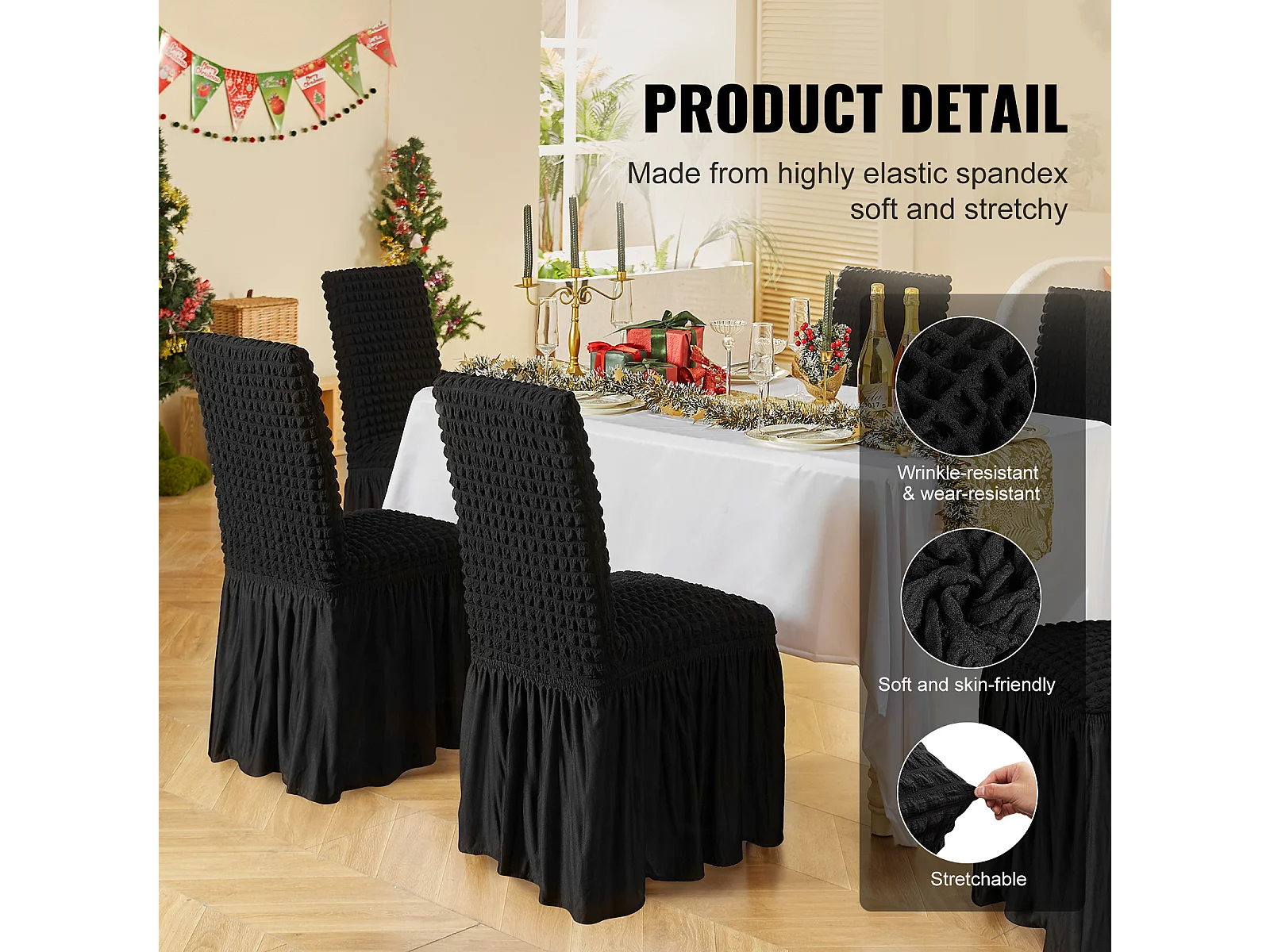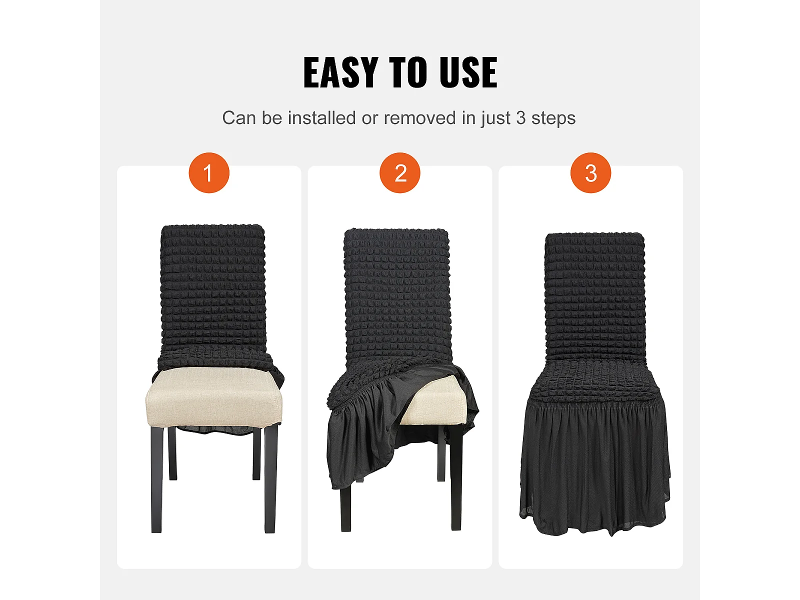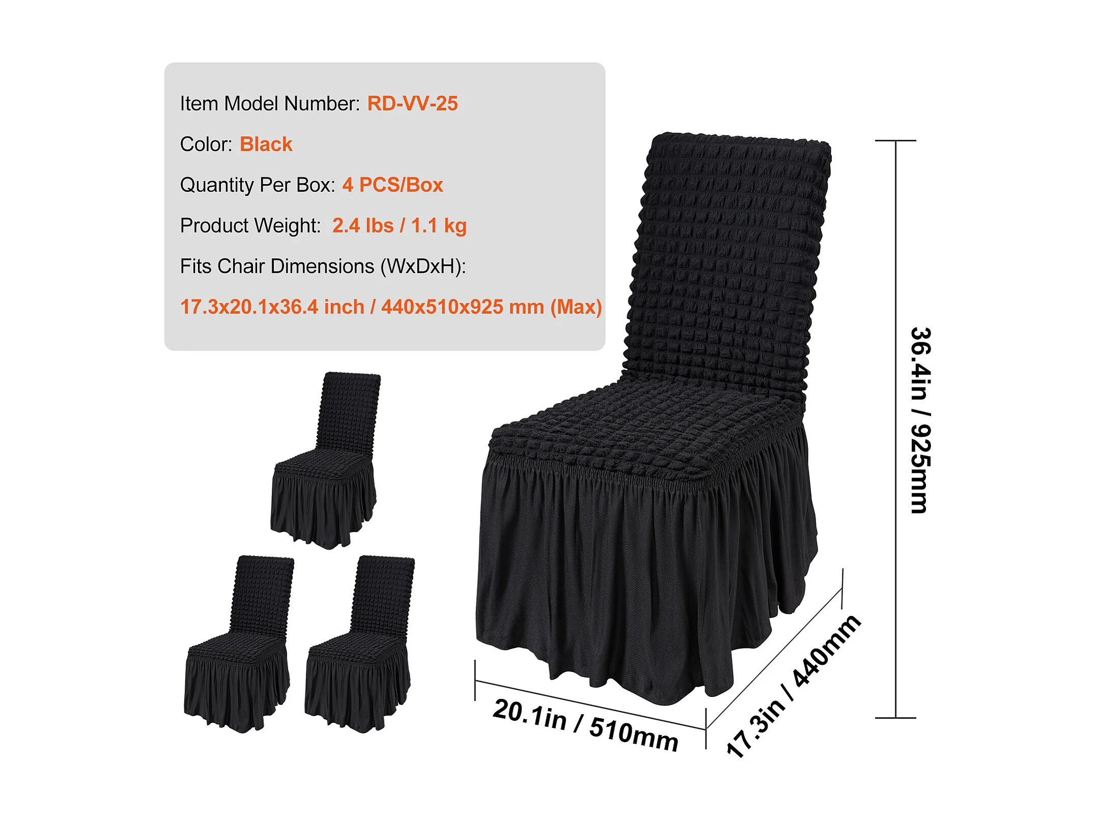 Capa de Cadeira SucceBuy 4 Peças, Preto, Capas de Proteção Universal para Festa de Casamento com Saia