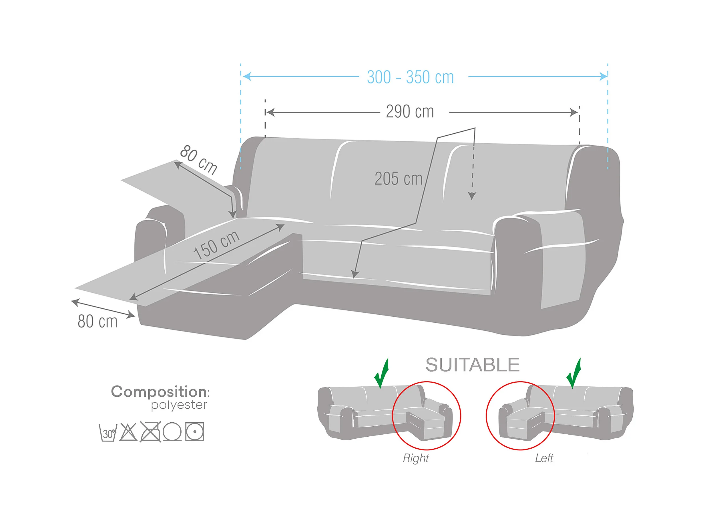 Capa de sofá acolchoada reversível chaise Michelle 290 cm C/06