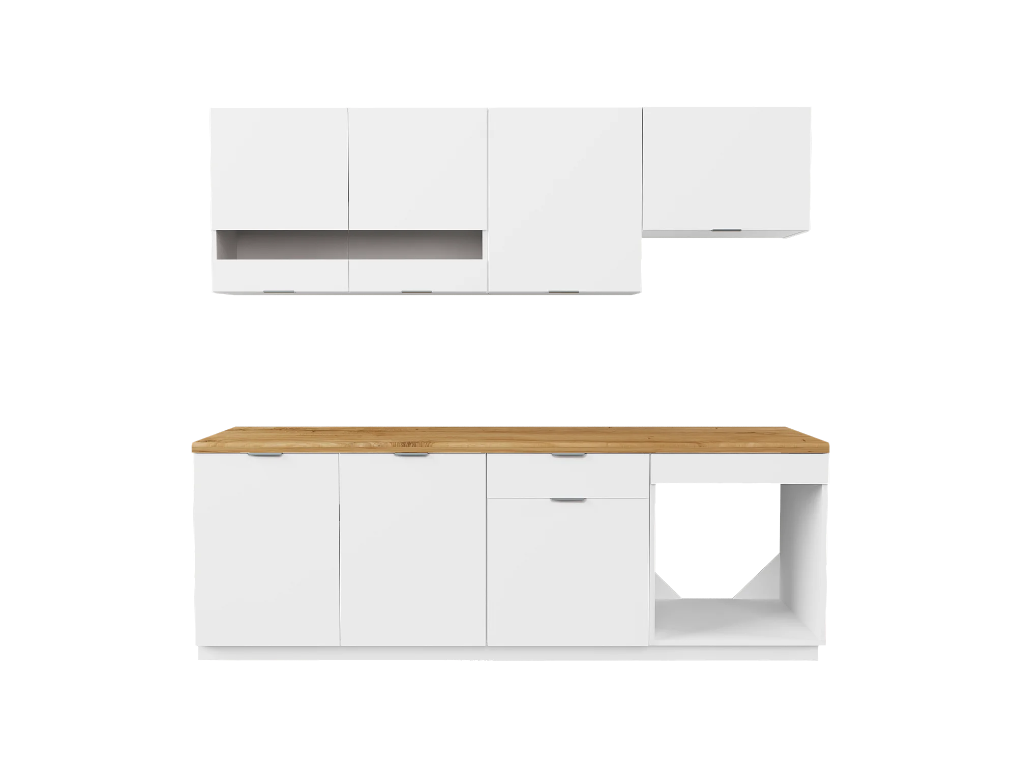 Conjunto cozinha completa + coluna branco e natural - CARMEO