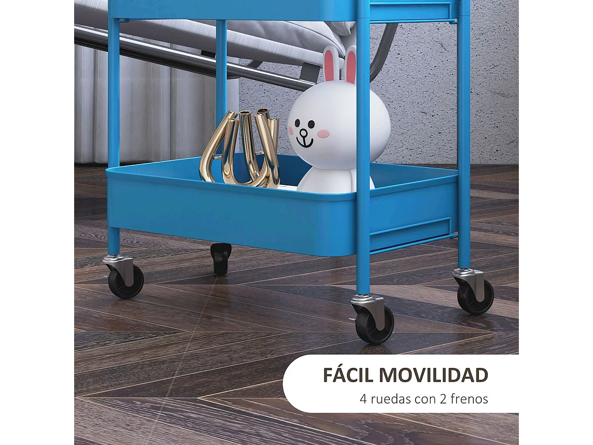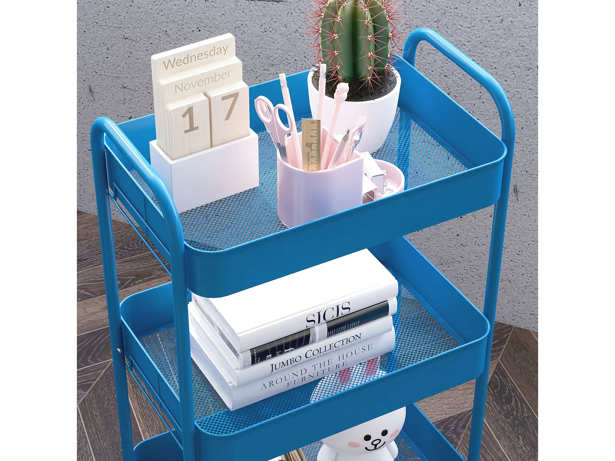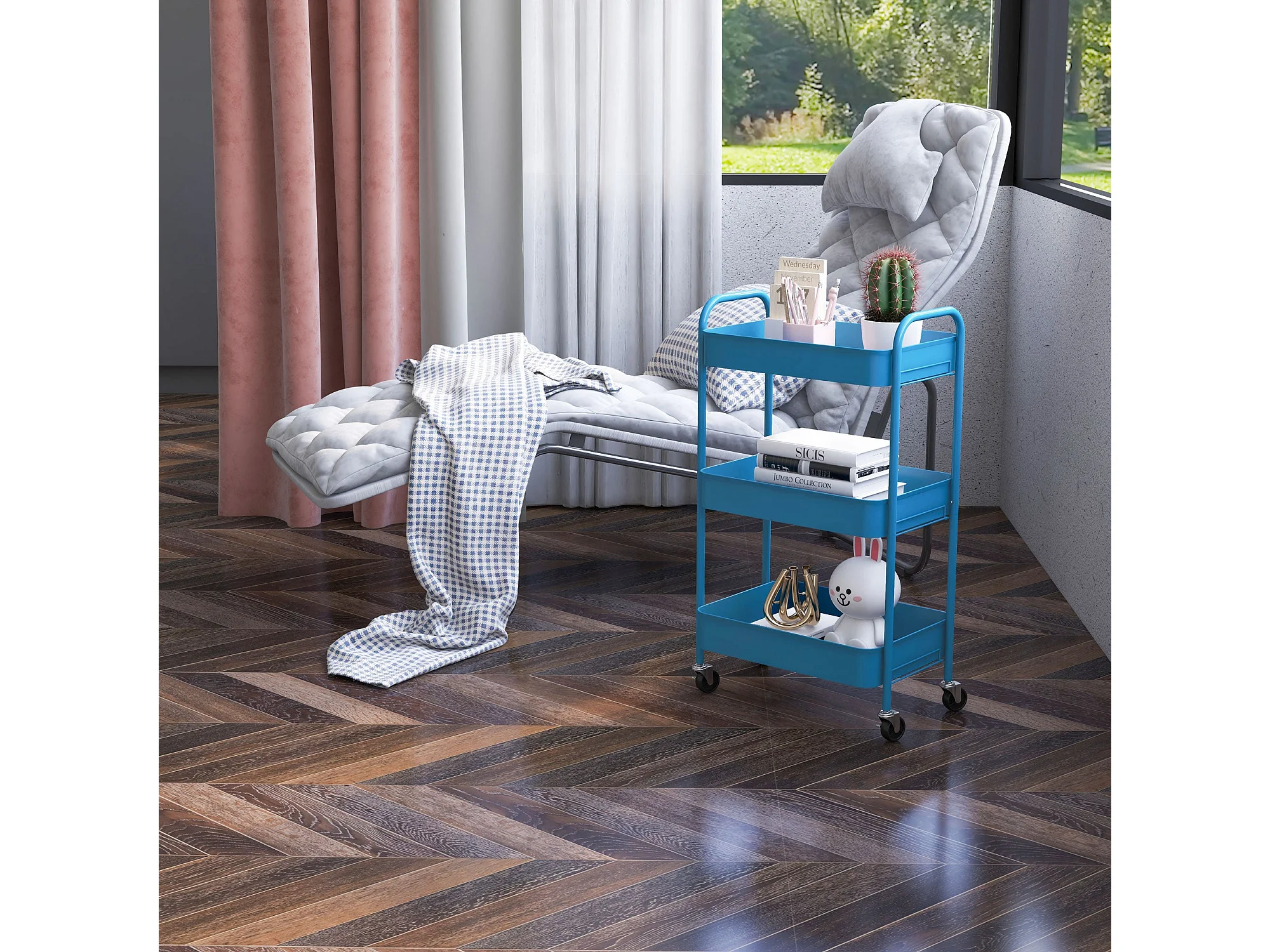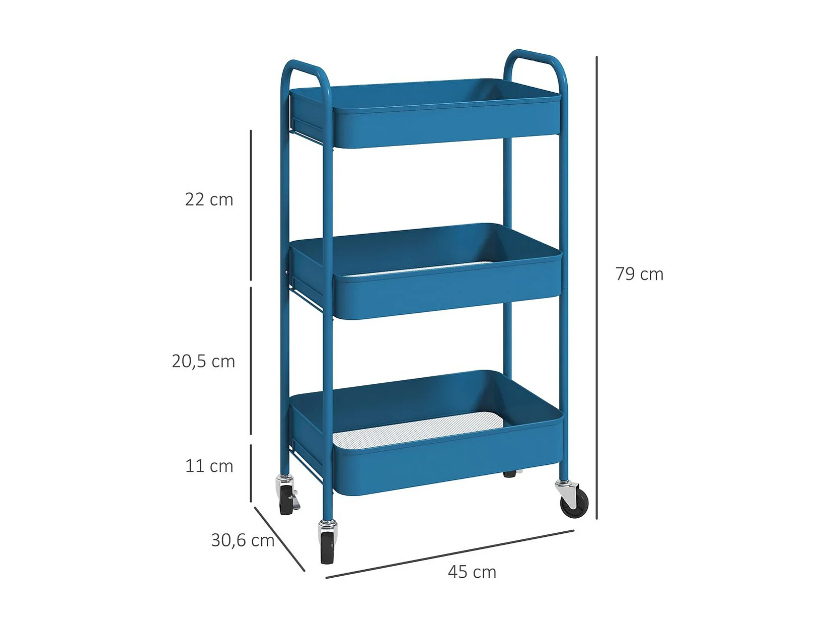 Carrinho Auxiliar de Cozinha com 3 Prateleiras e Rodas - Modelo Ålesund em Azul Escuro