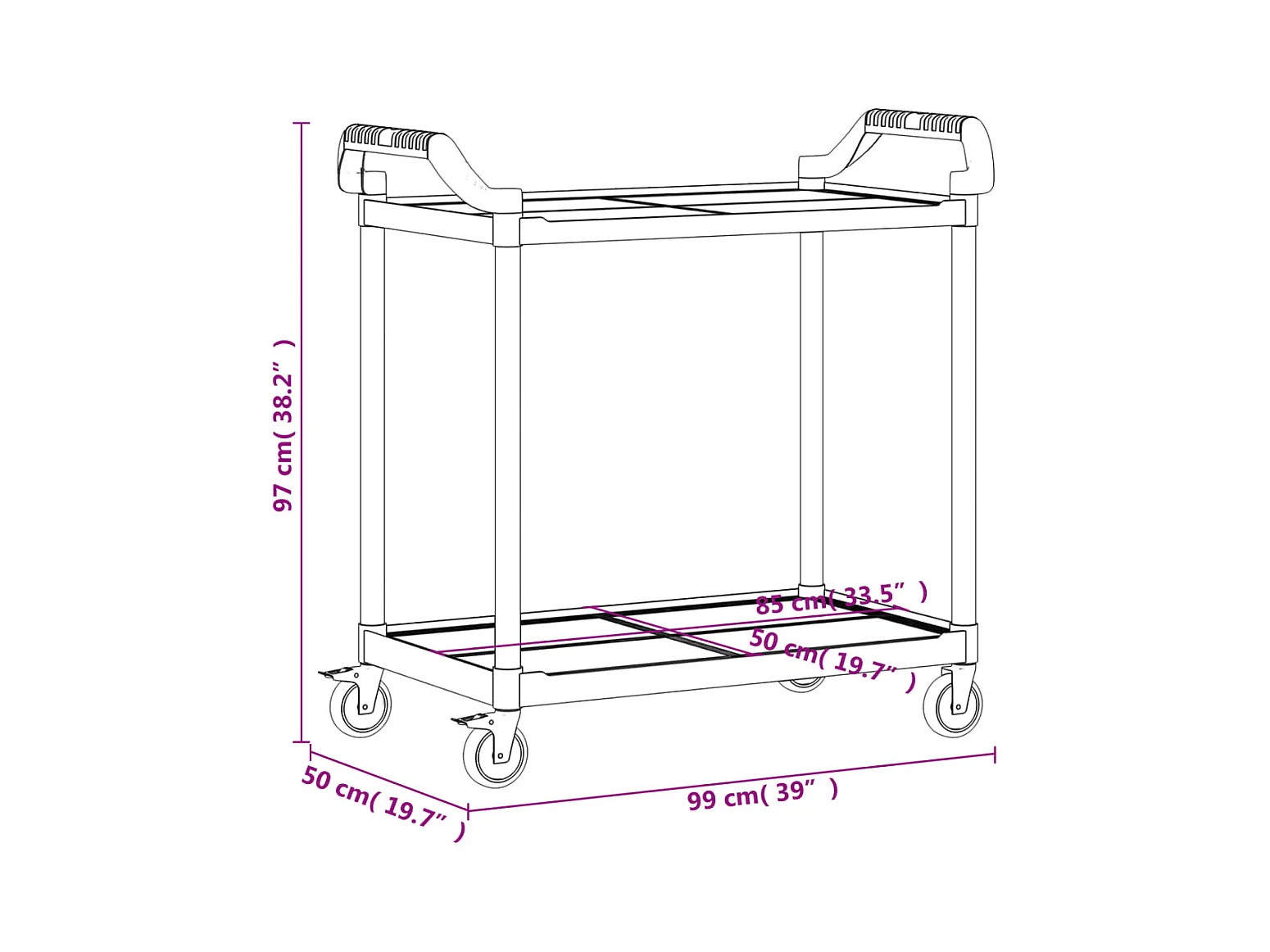 Carrinho c/ 2 prateleiras 99x50x97 cm alumínio cinzento