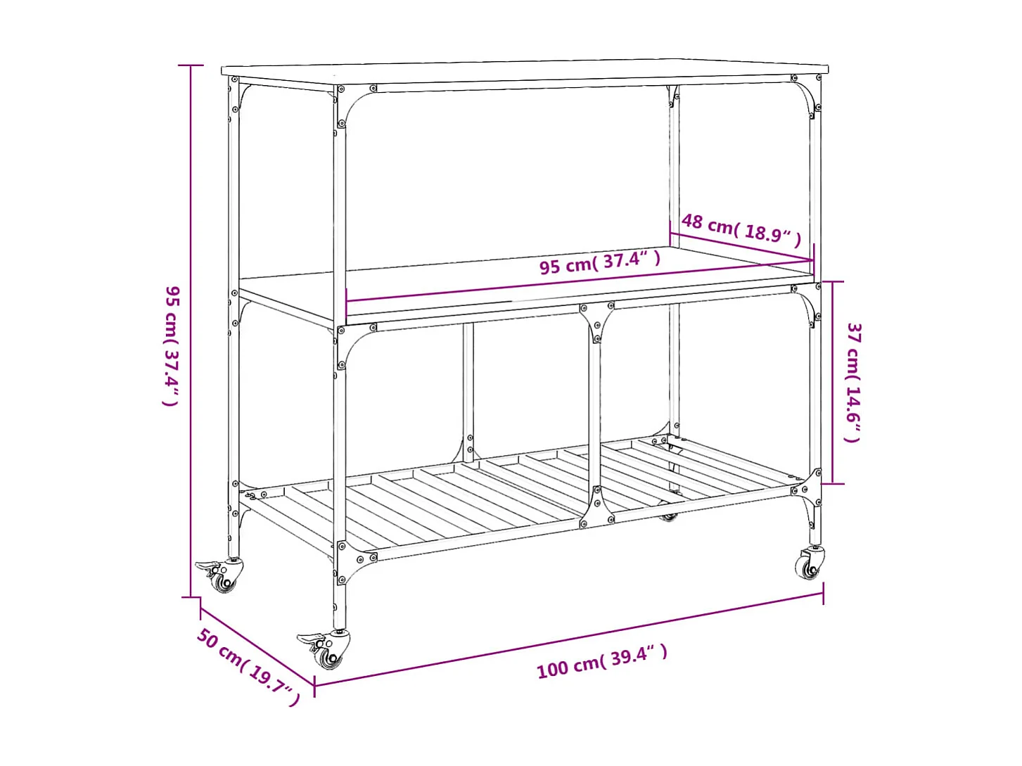 Carrinho cozinha 102x50x95 cm deriv. madeira carvalho fumado