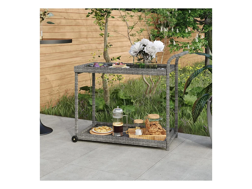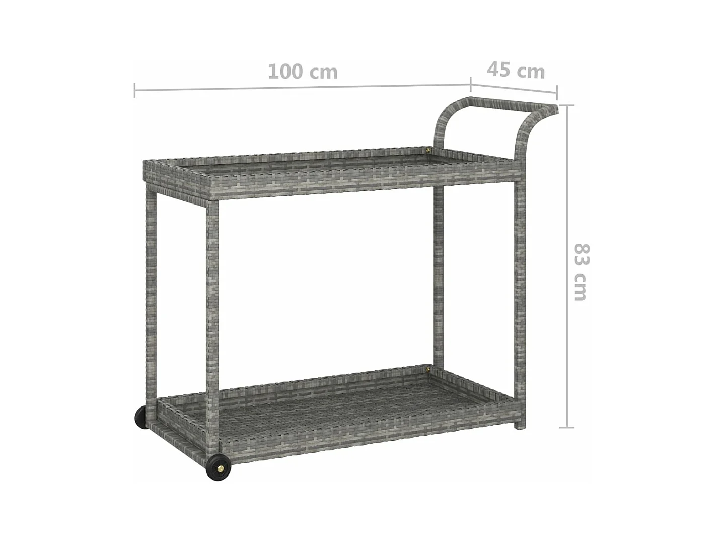 Carrinho de bar 100x45x83 cm vime PE cinzento