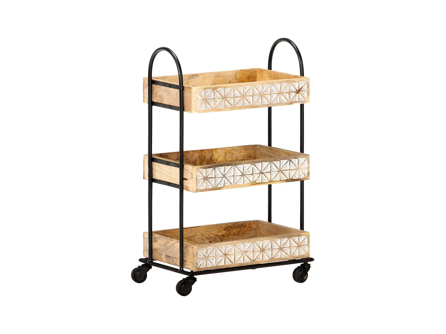 Carrinho de cozinha 3 prateleiras 46x30x76 cm mangueira maciça