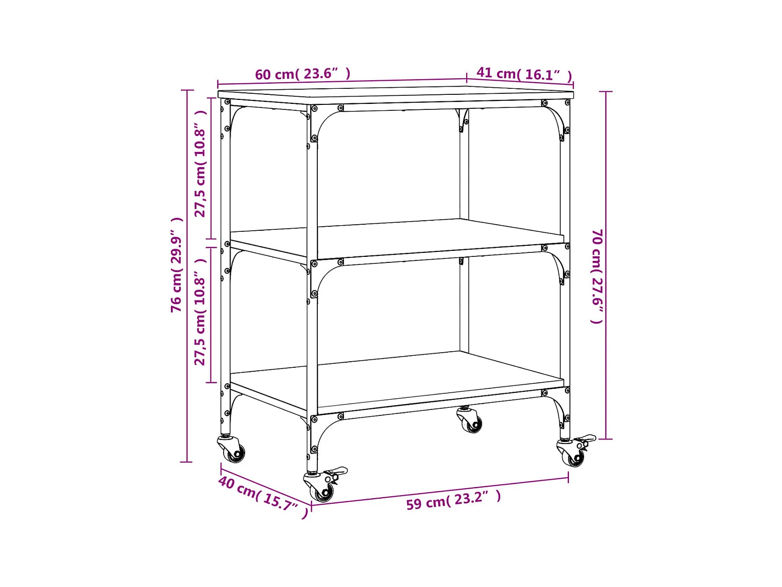 Carrinho de cozinha 60x41x76 cm derivados madeira cinza sonoma