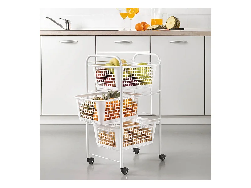 Carrinho de cozinha com 3 cestos Siena branco