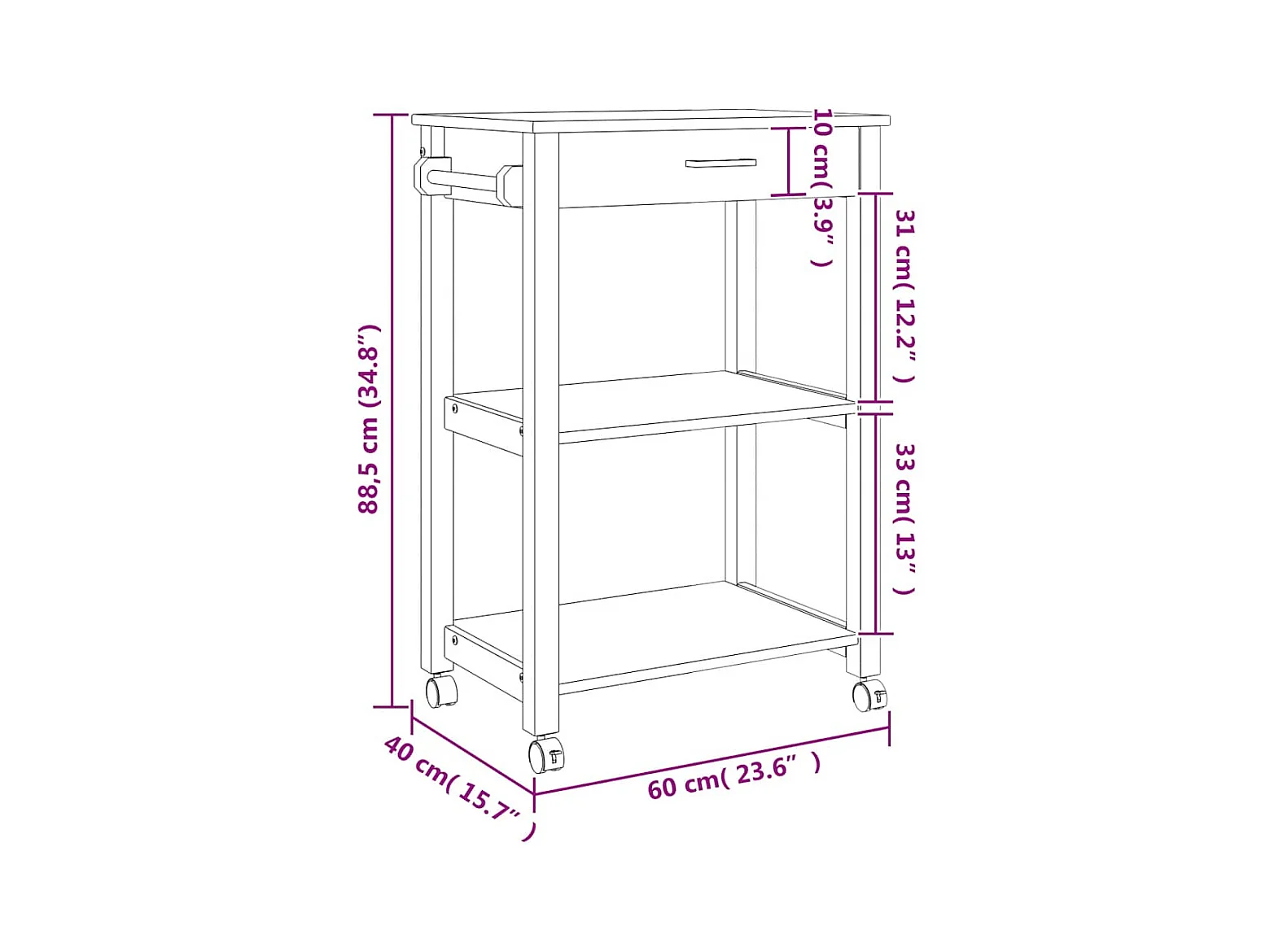 Carrinho de cozinha MONZA 60x40x88,5 cm madeira de pinho maciça