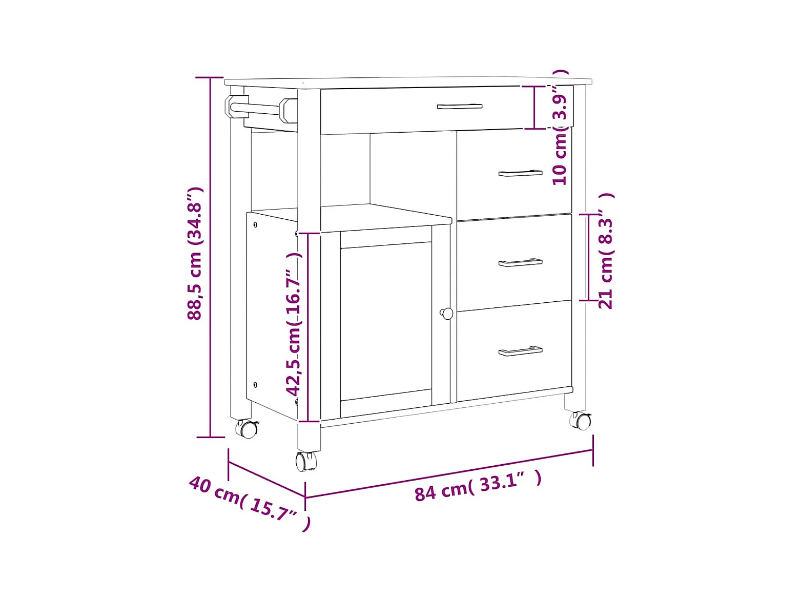 Carrinho de cozinha MONZA 84x40x88,5 cm madeira de pinho maciça