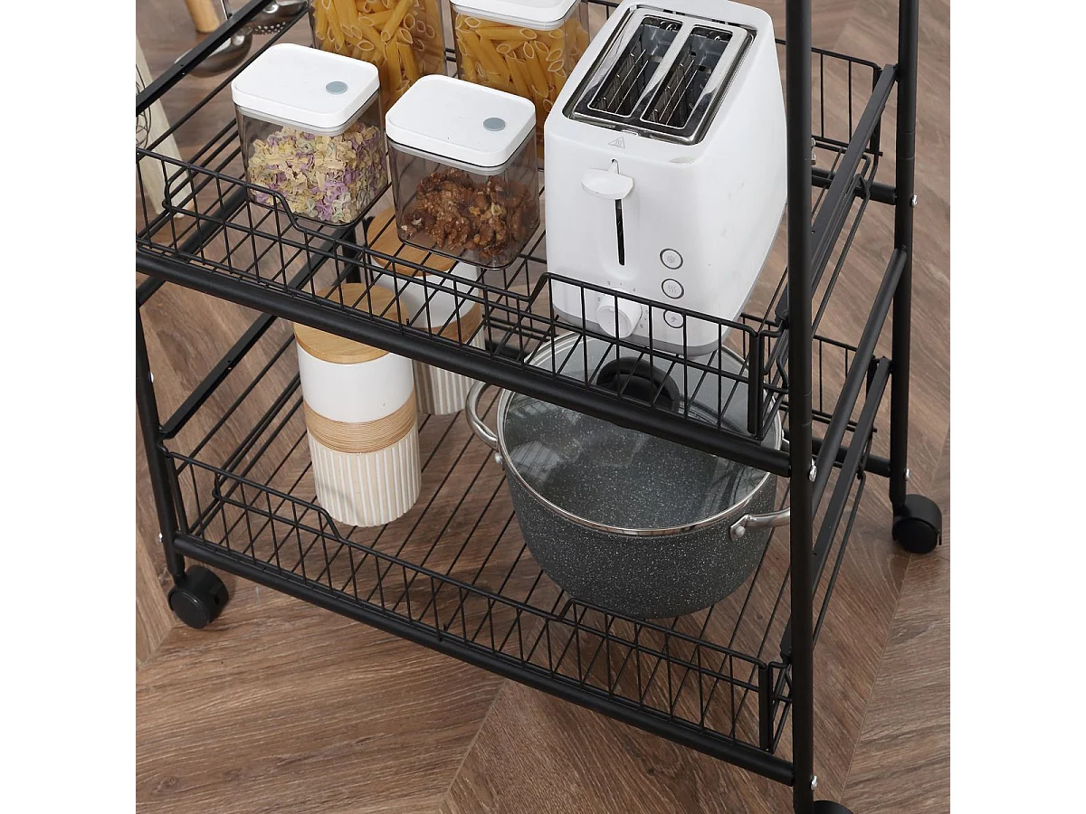 Carrinho de servir, móvel de armazenamento design para cozinha ou sala de jantar TROLLEY. Cores madeira e preto.