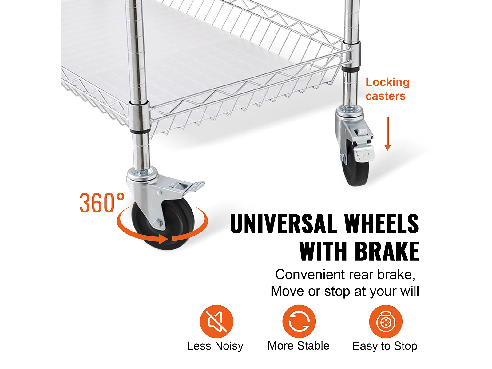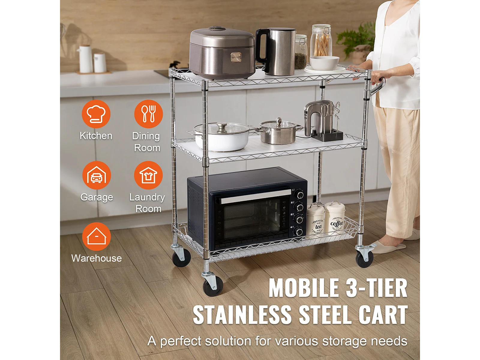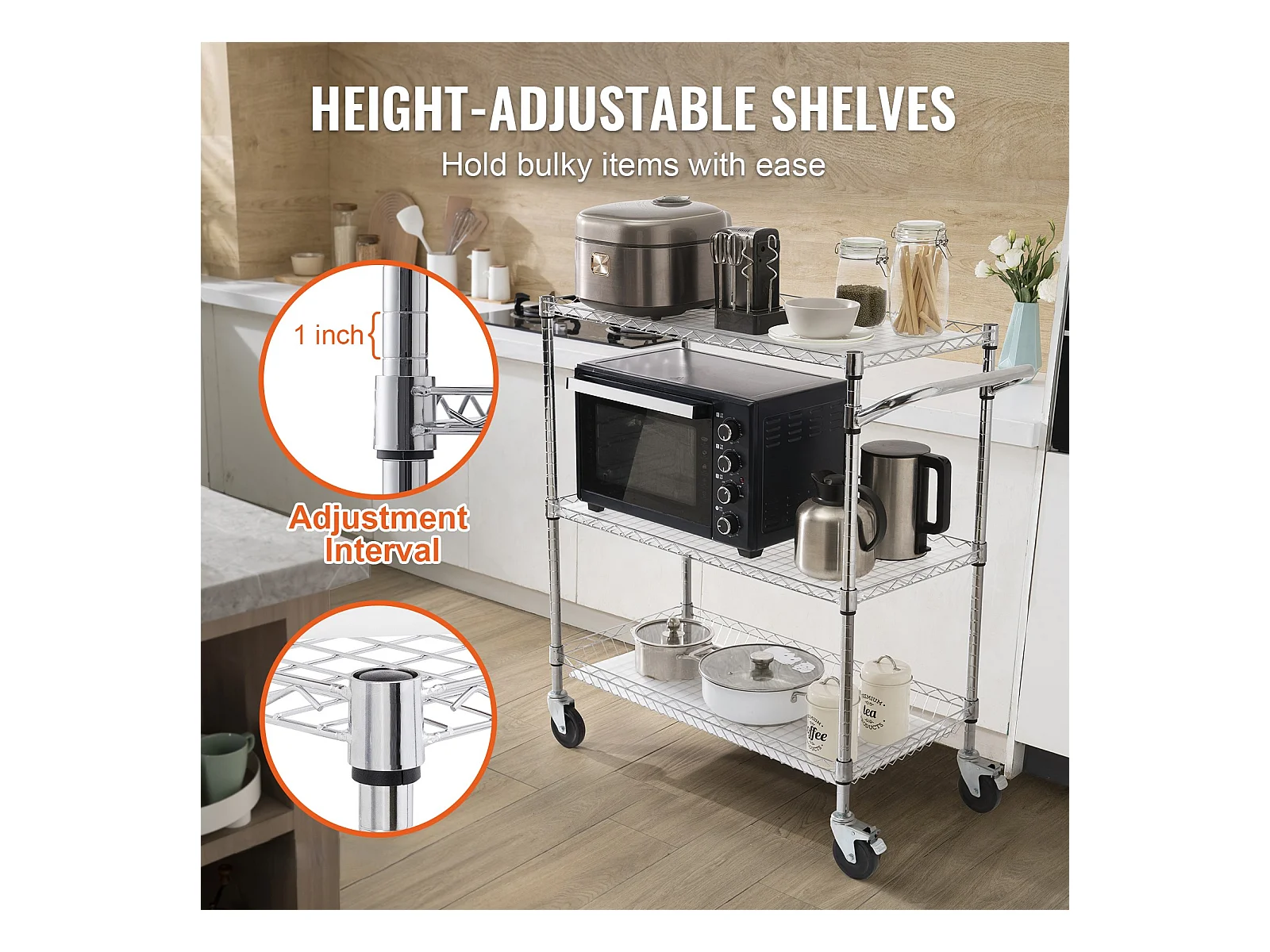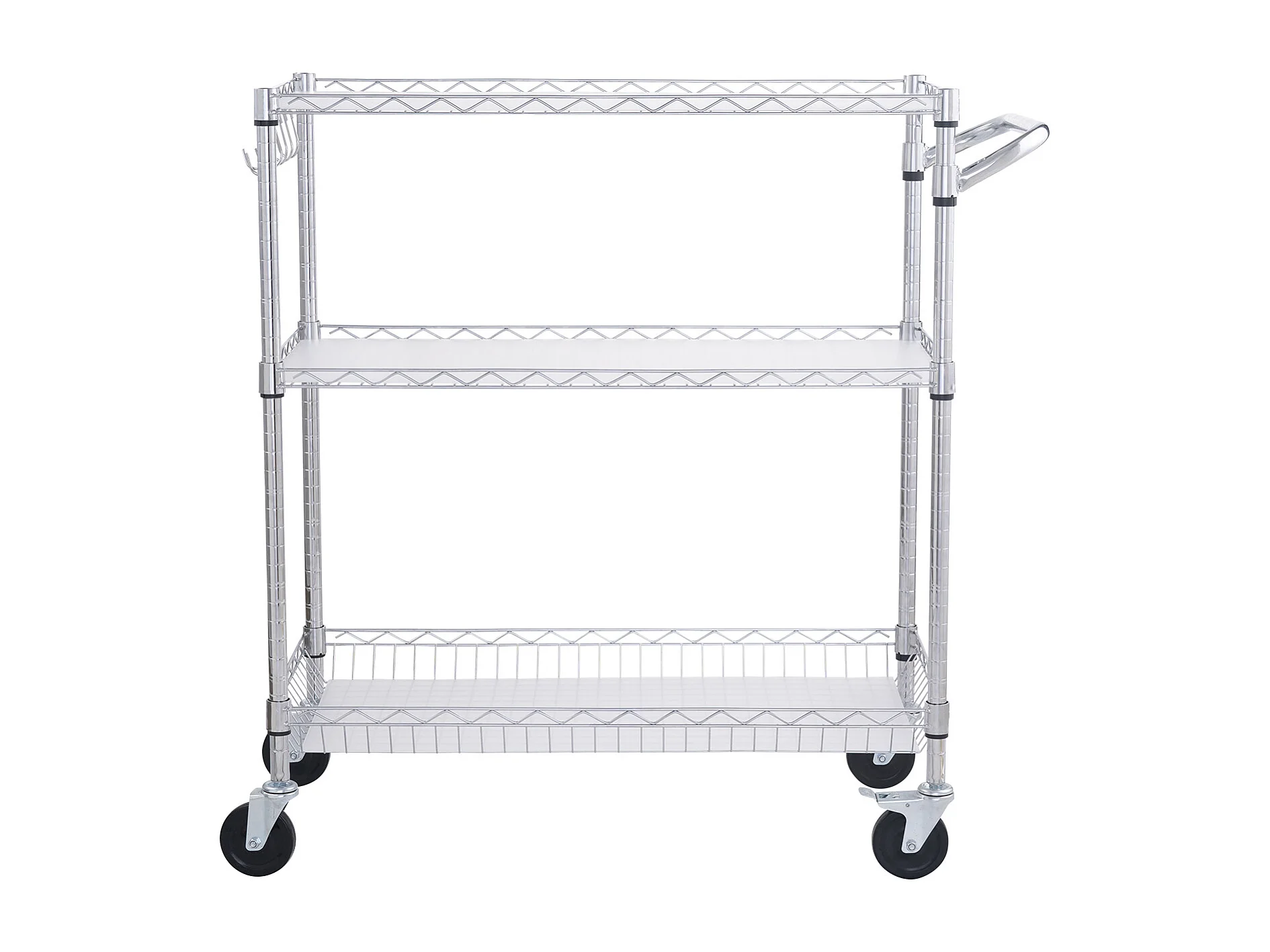 Carrinho de Cozinha, SucceBuy Carrinho Utilitário de 3 Andares com Rodízios 89 × 46 × 90 cm 300 kg 6 Ganchos