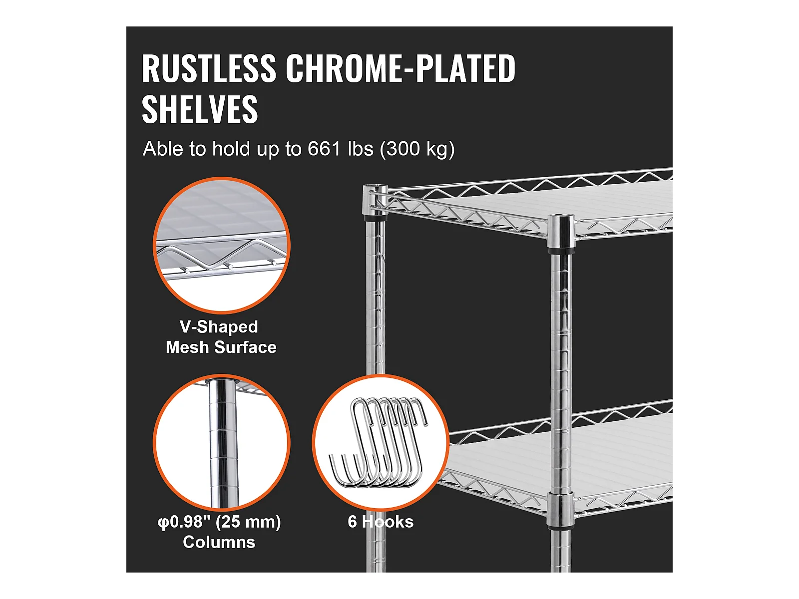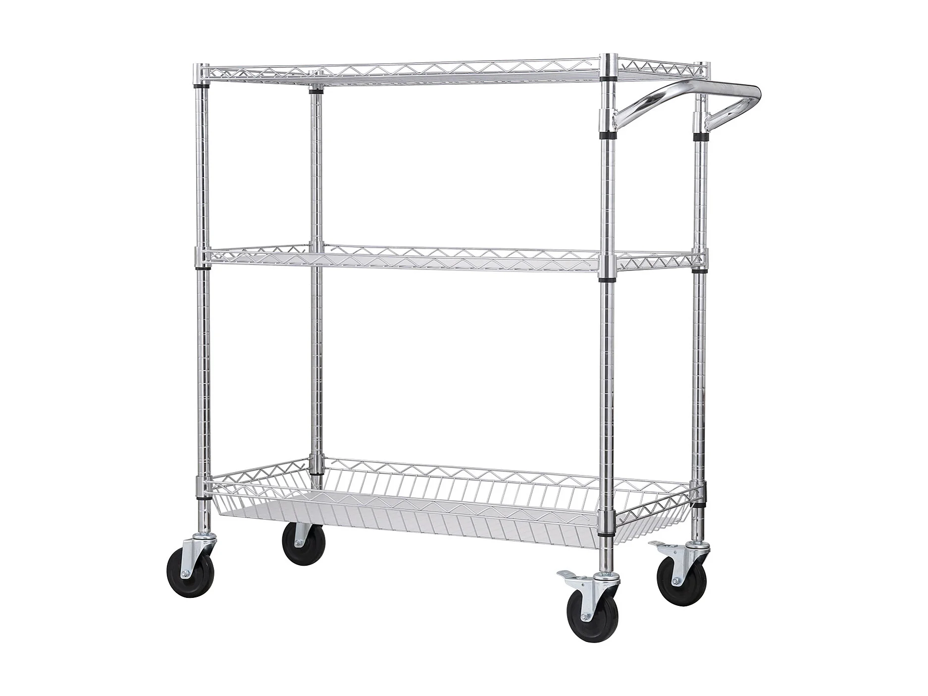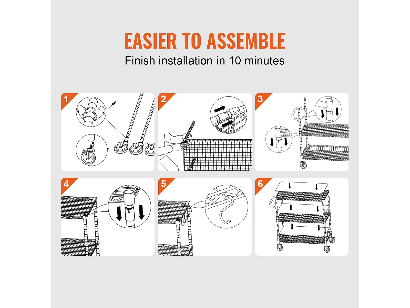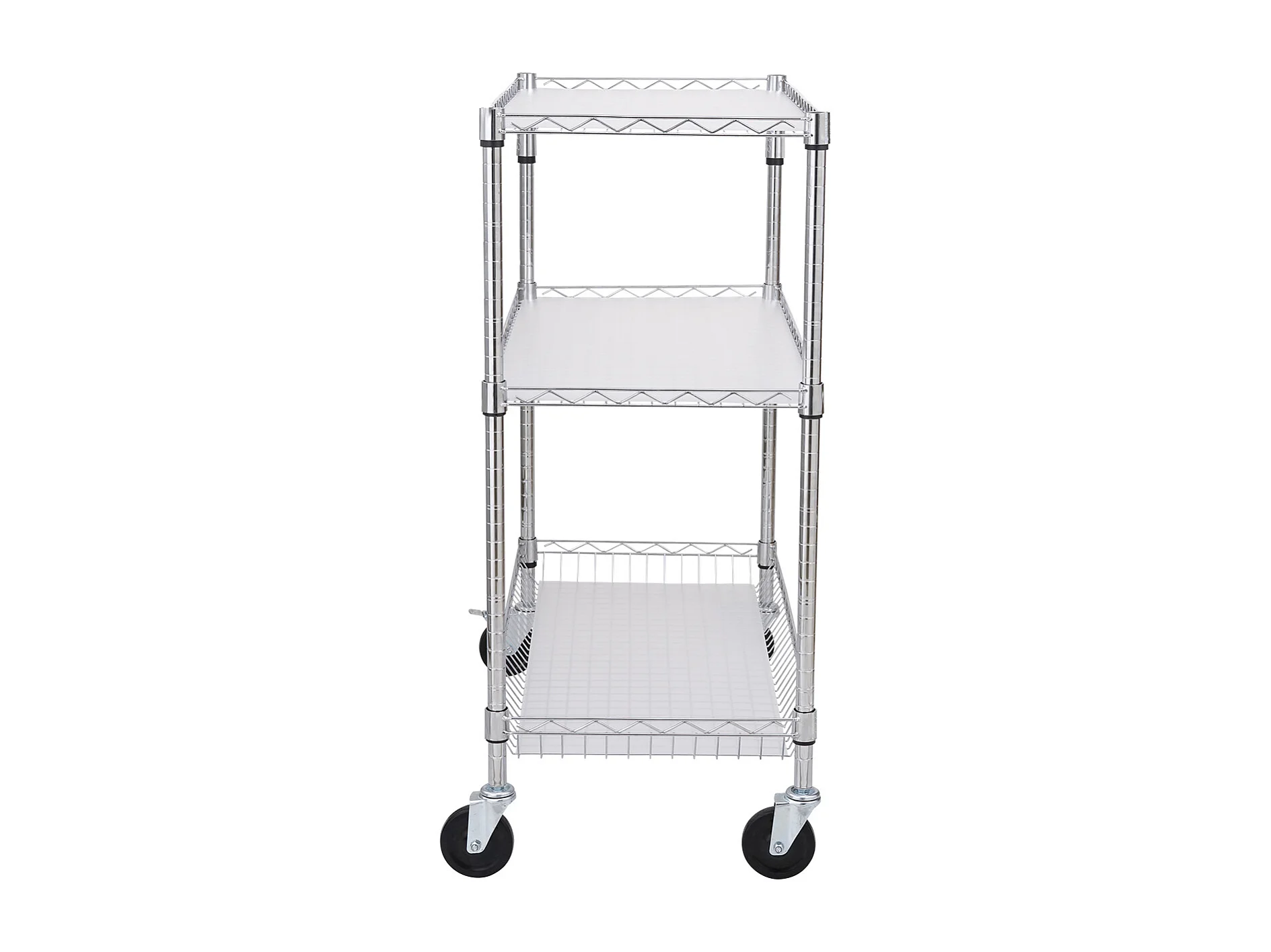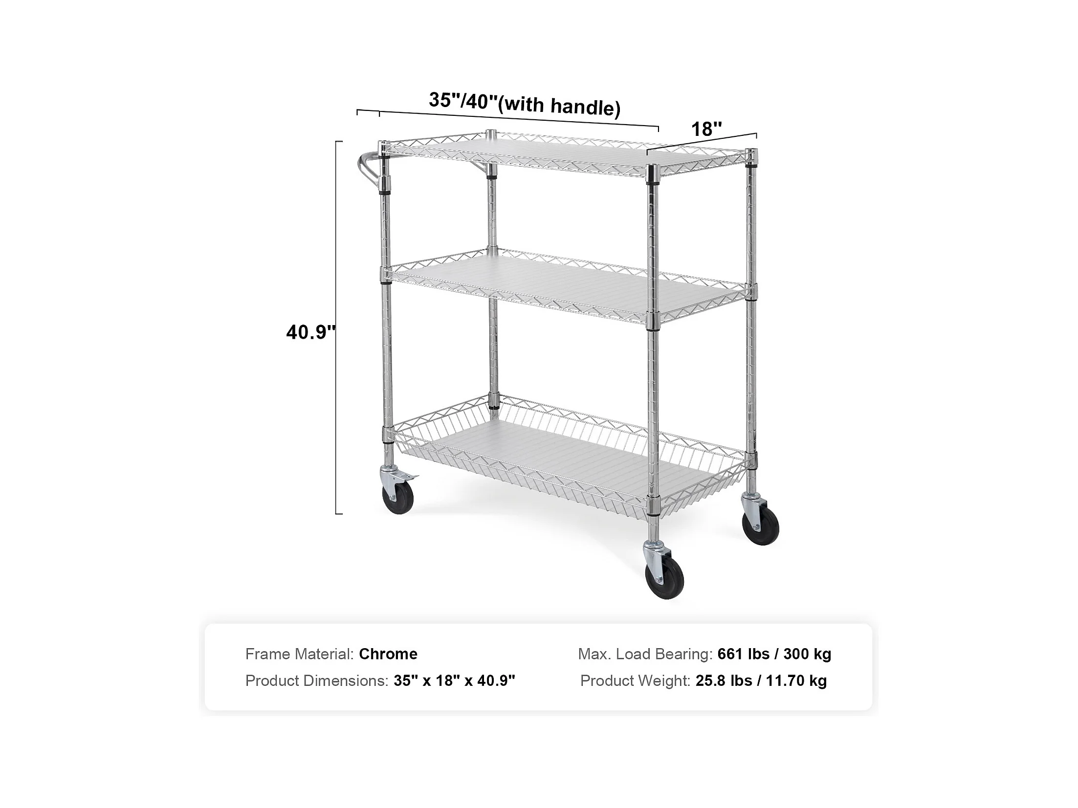 Carrinho de Cozinha, SucceBuy Carrinho Utilitário de 3 Andares com Rodízios 89 × 46 × 90 cm 300 kg 6 Ganchos