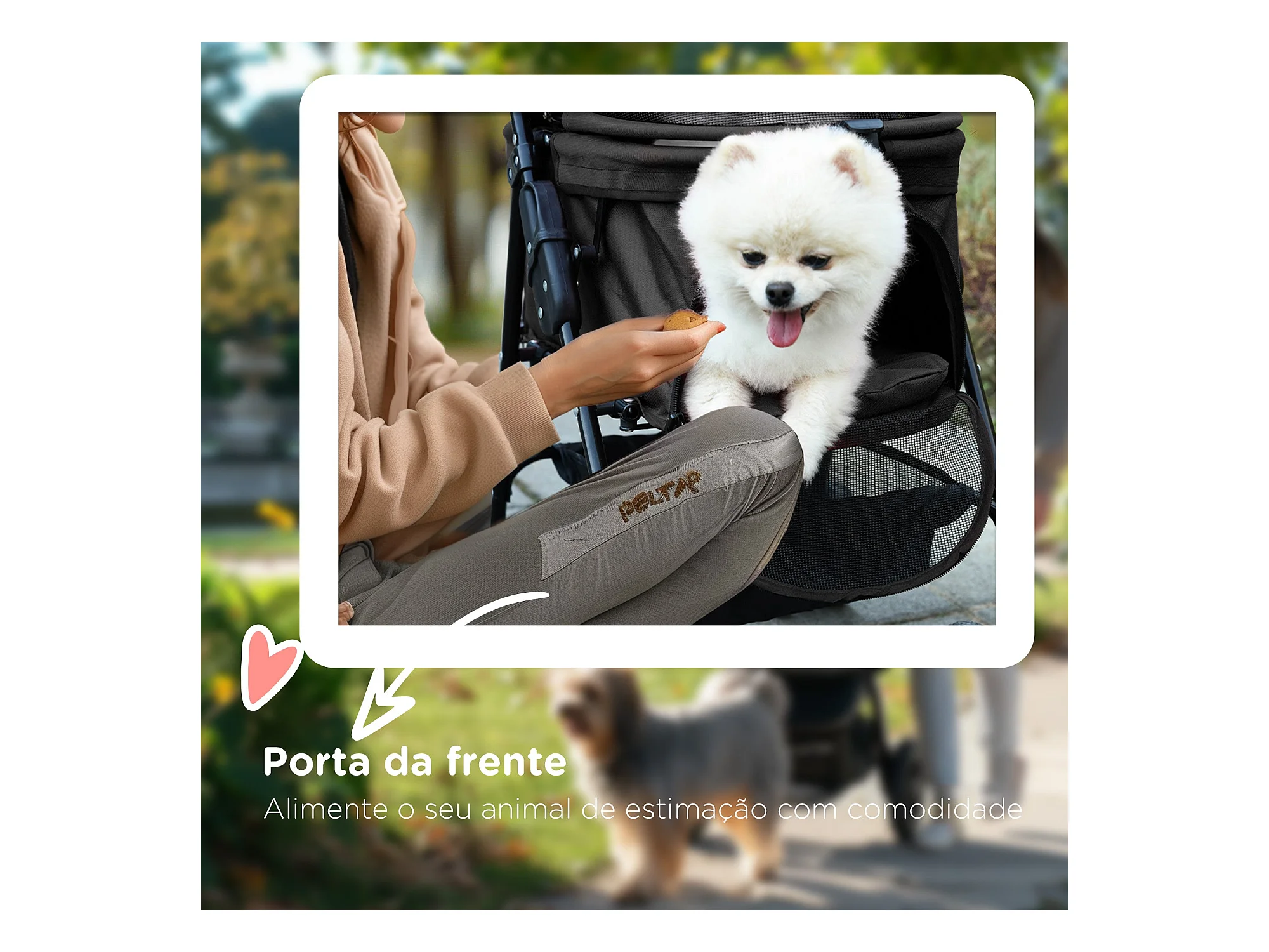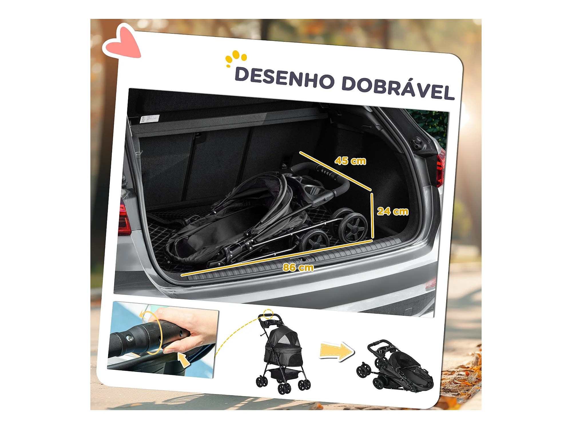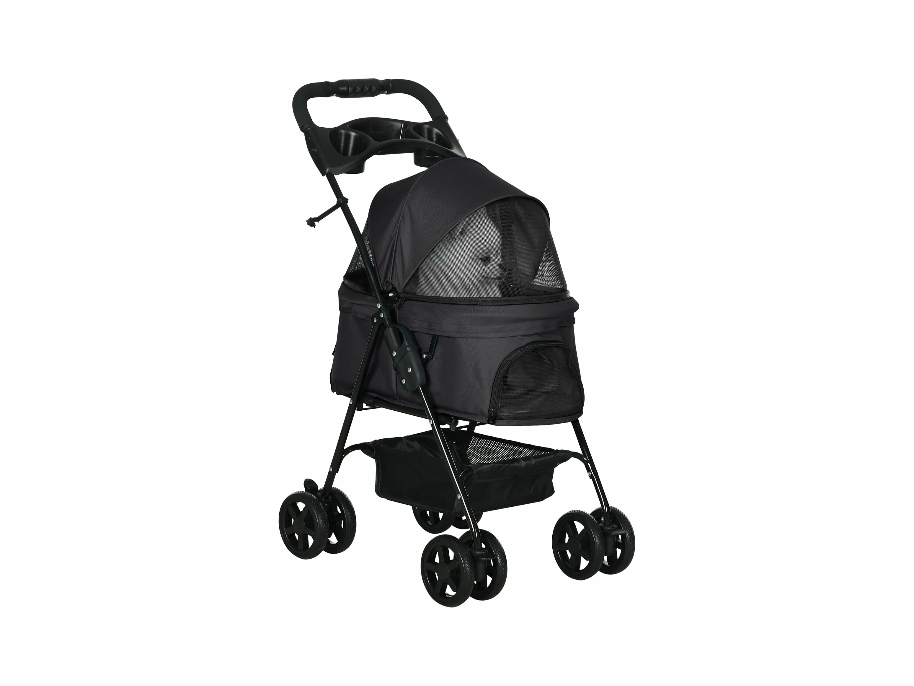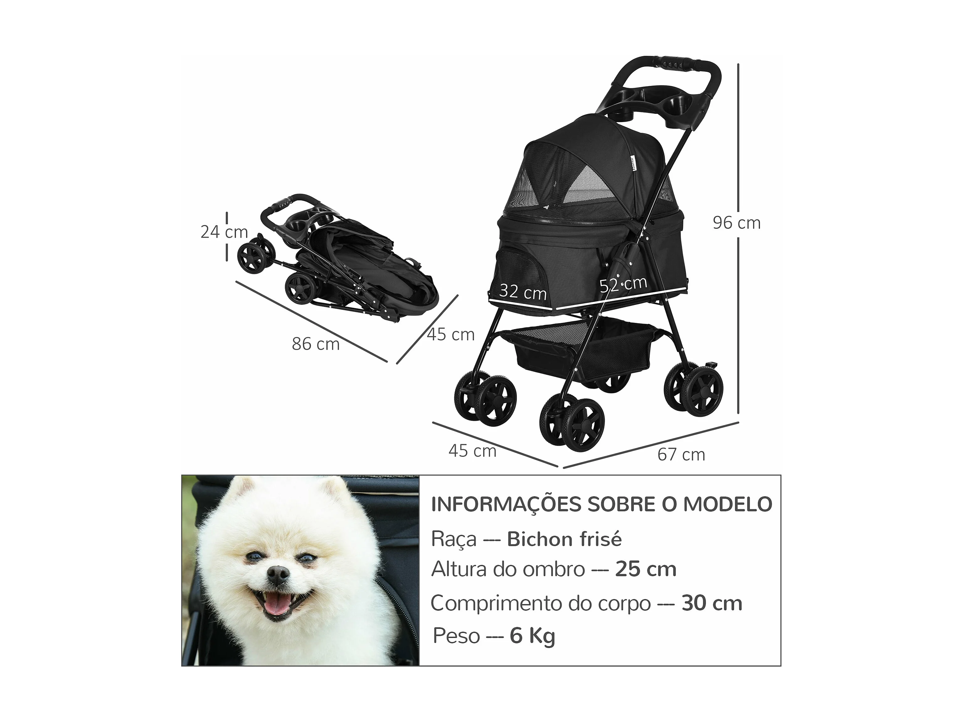 Carrinho Dobrável para Cães Pequenos PawHut com Rodas Giratórias e Cesta de Armazenamento - Preto 67x45x96 cm