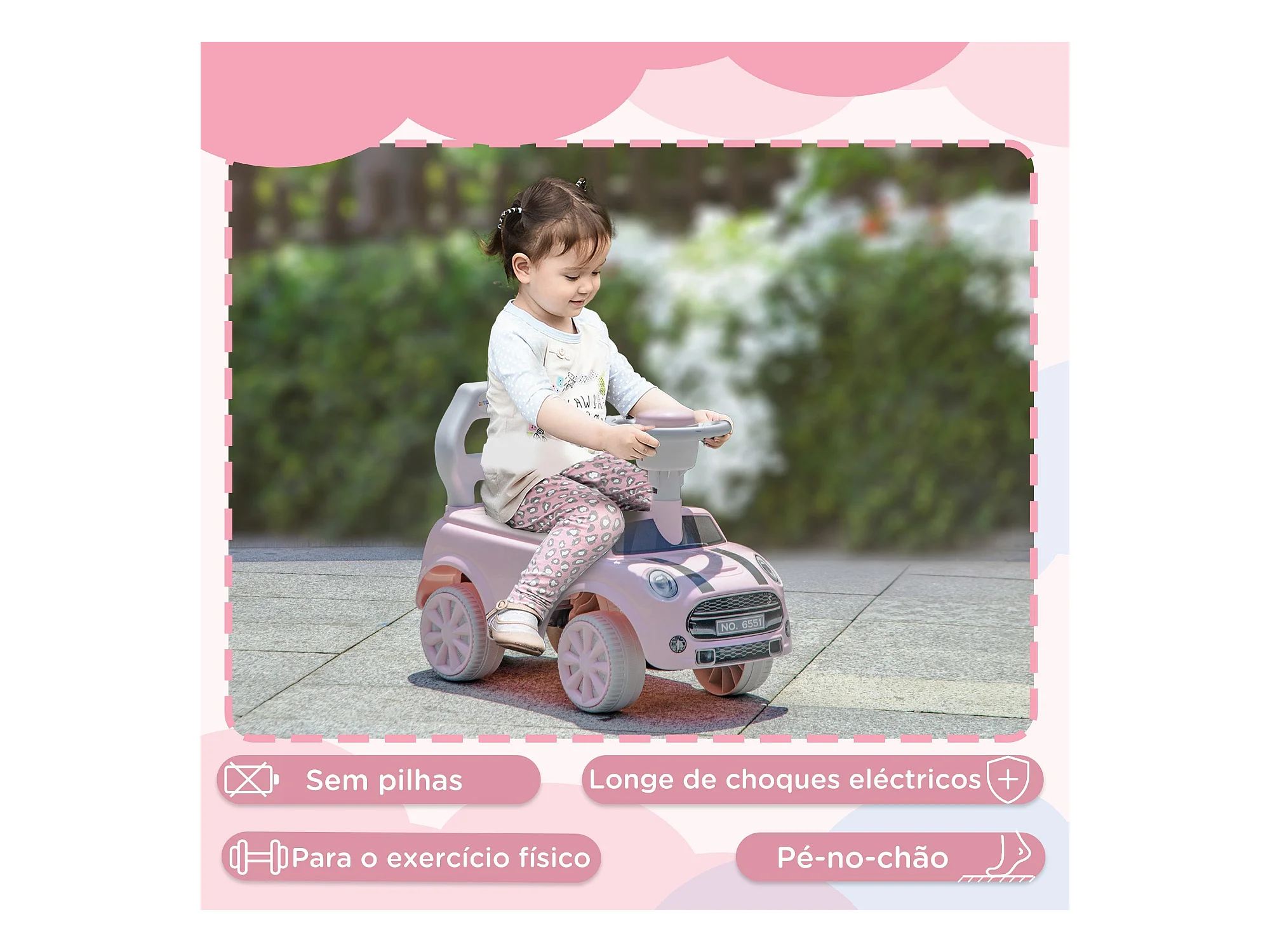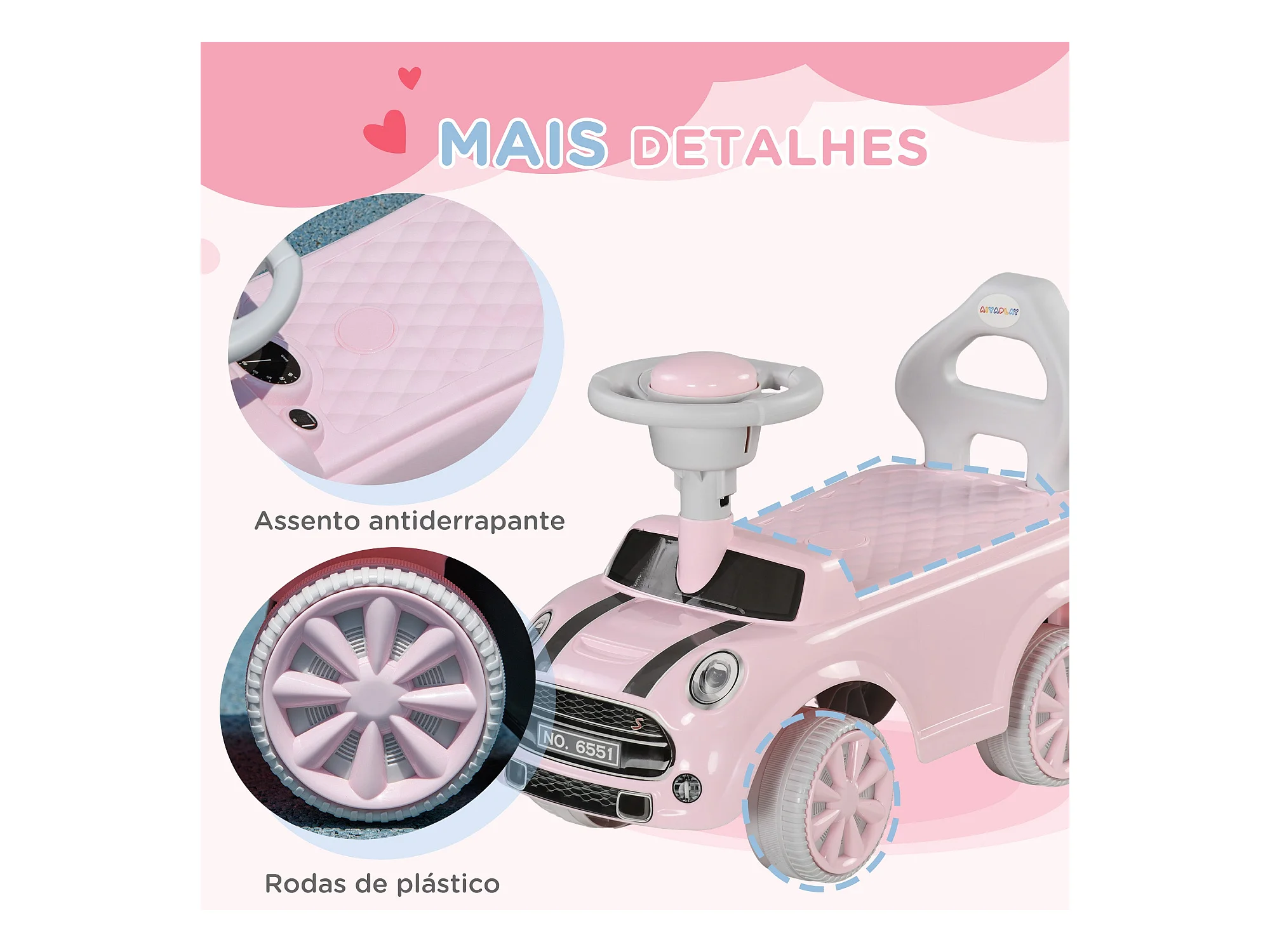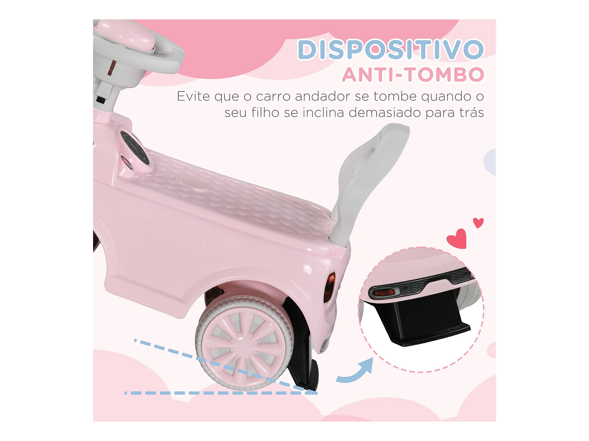 Carro Andador AIYAPLAY para Bebês de 18 a 36 Meses com Volante, Buzina e Sistema Anti-Tombo Rosa
