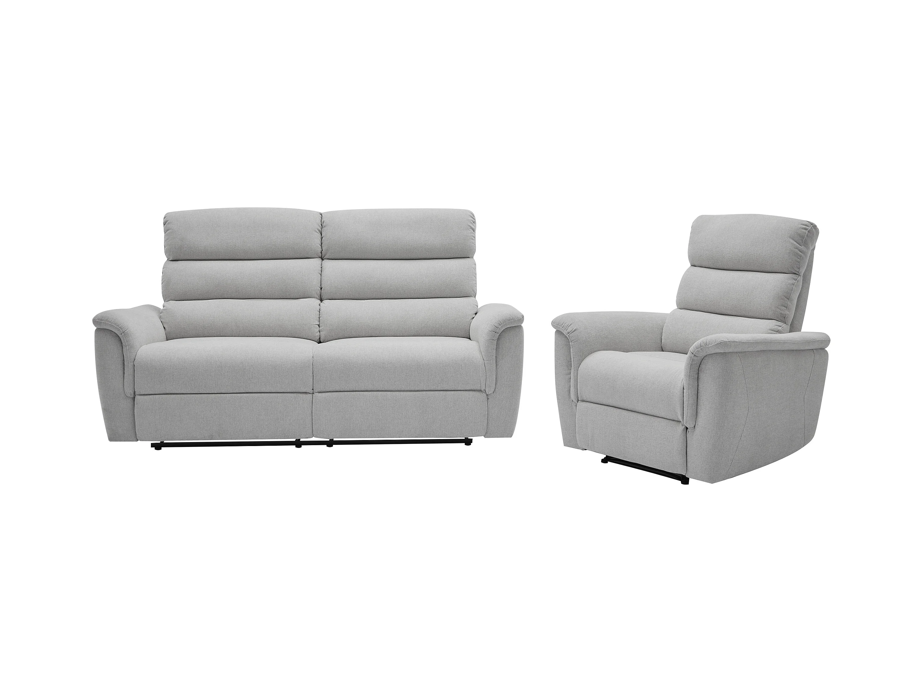 Sofá de 3 lugares e poltrona articulados elétricos em tecido cinza-claro - CARTASIA