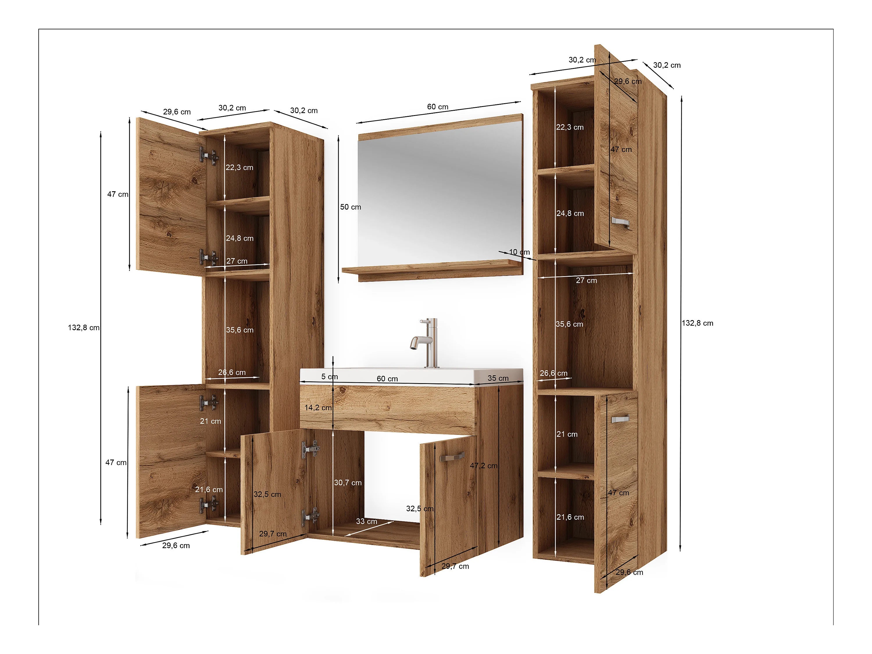 Móveis de casa de banho, conjunto suspenso com lavatório, espelho e 2 colunas, wotan mate