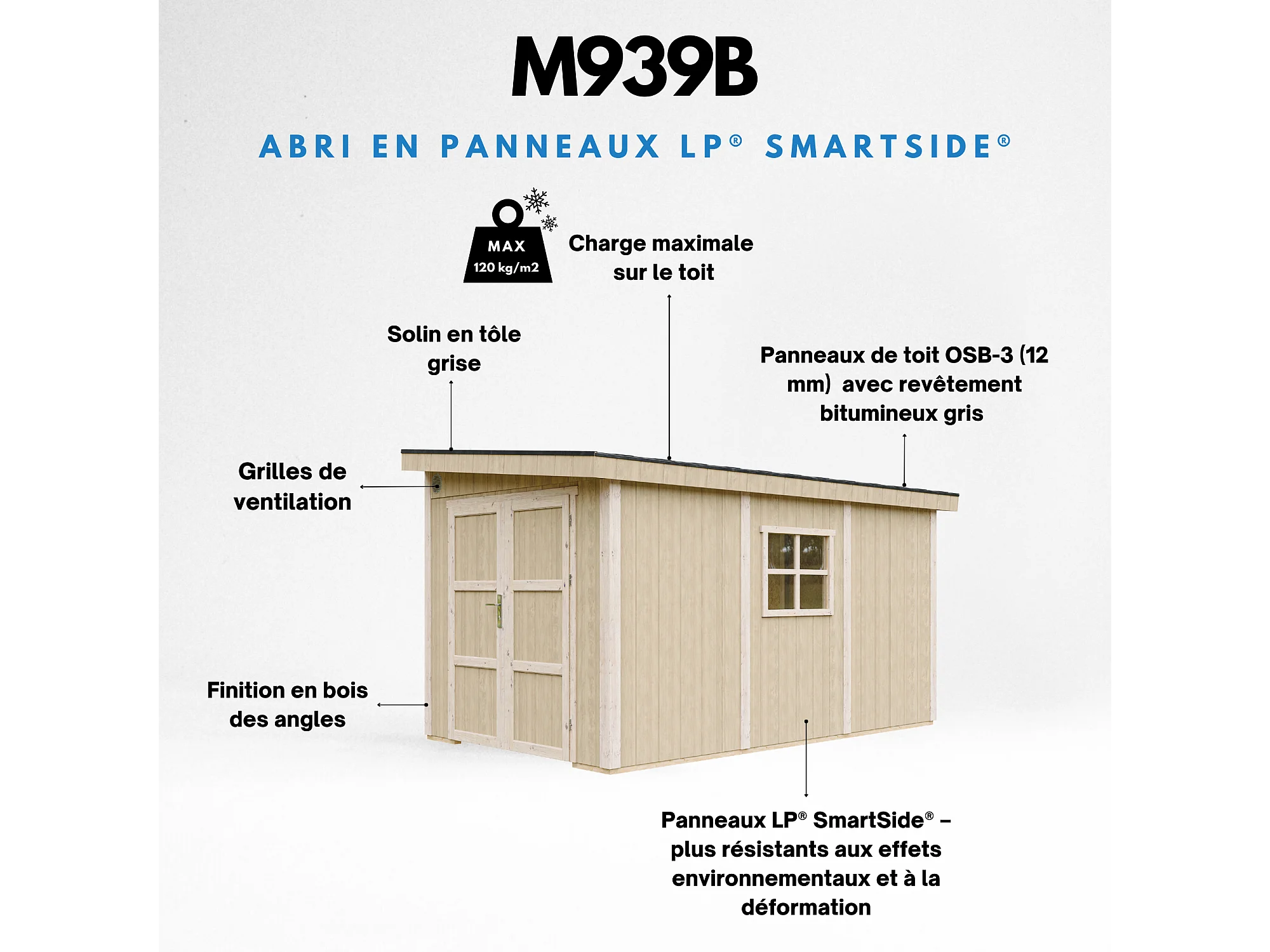 Casa de jardim qualidade premium sem piso e parede lateral - 8.68 m² / A231x248x412 cm - M939B-TUNDRA GREY