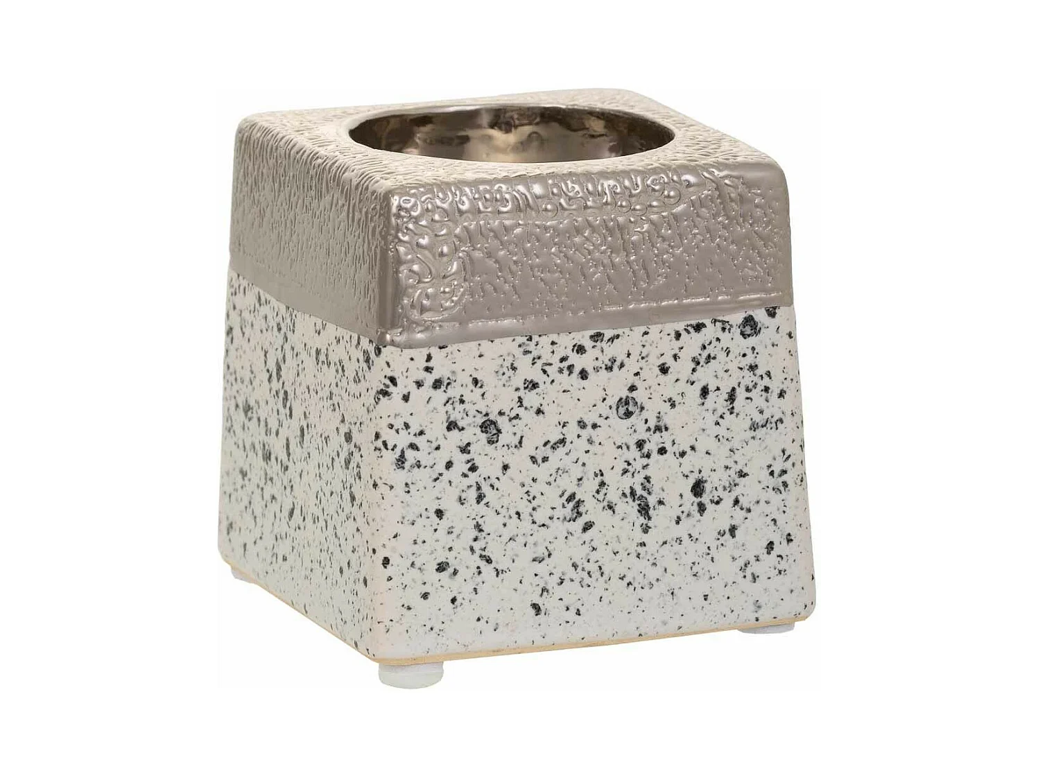 Abajur TOSEL LUSA tecido geométrico taupe D18 x H29 cm