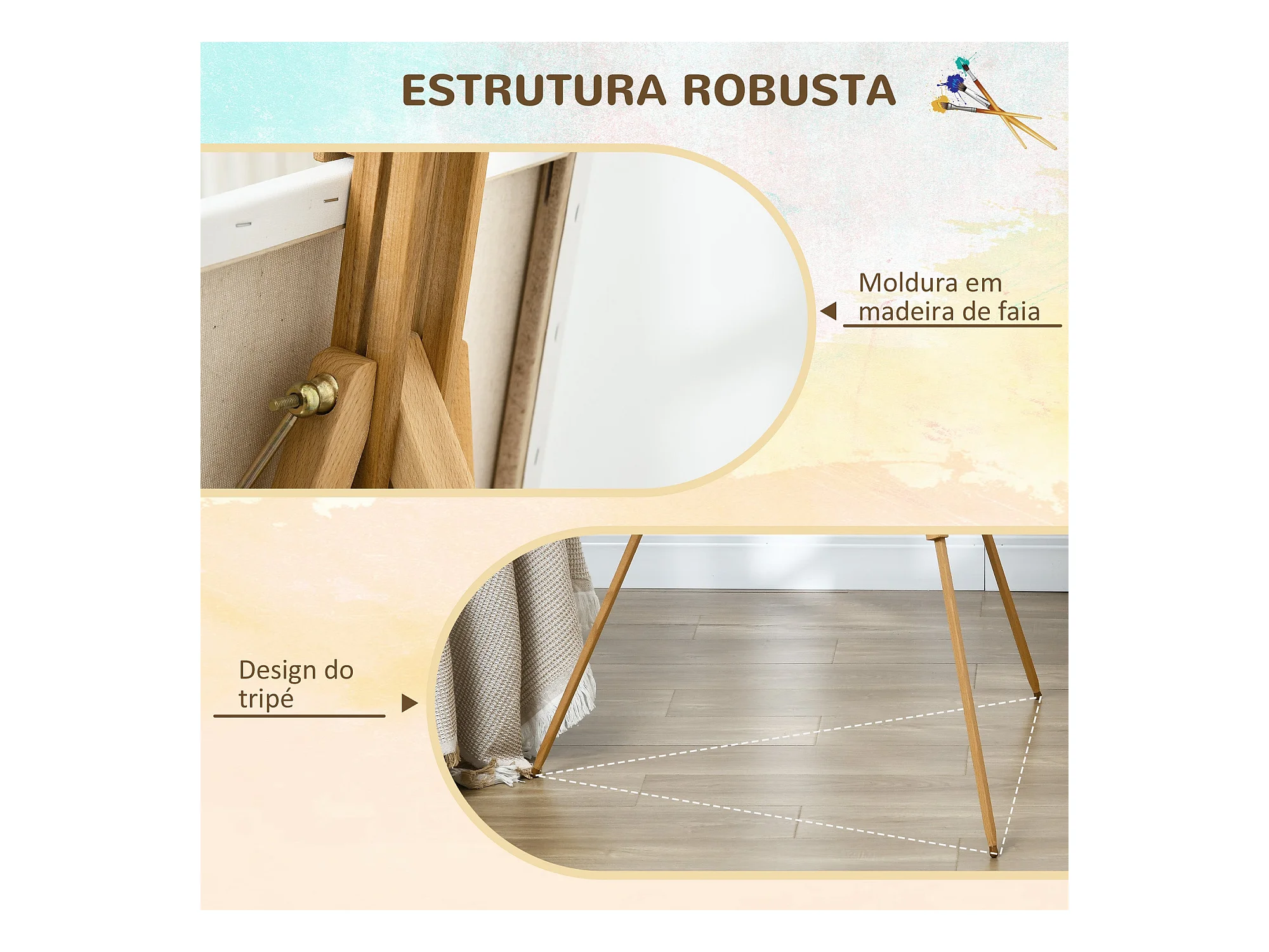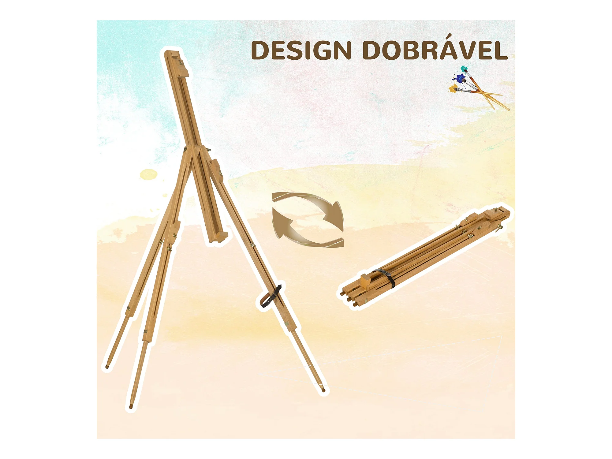 Cavalete de Pintura Dobrável Vinsetto com Altura Ajustável em Madeira de Faia para Artistas