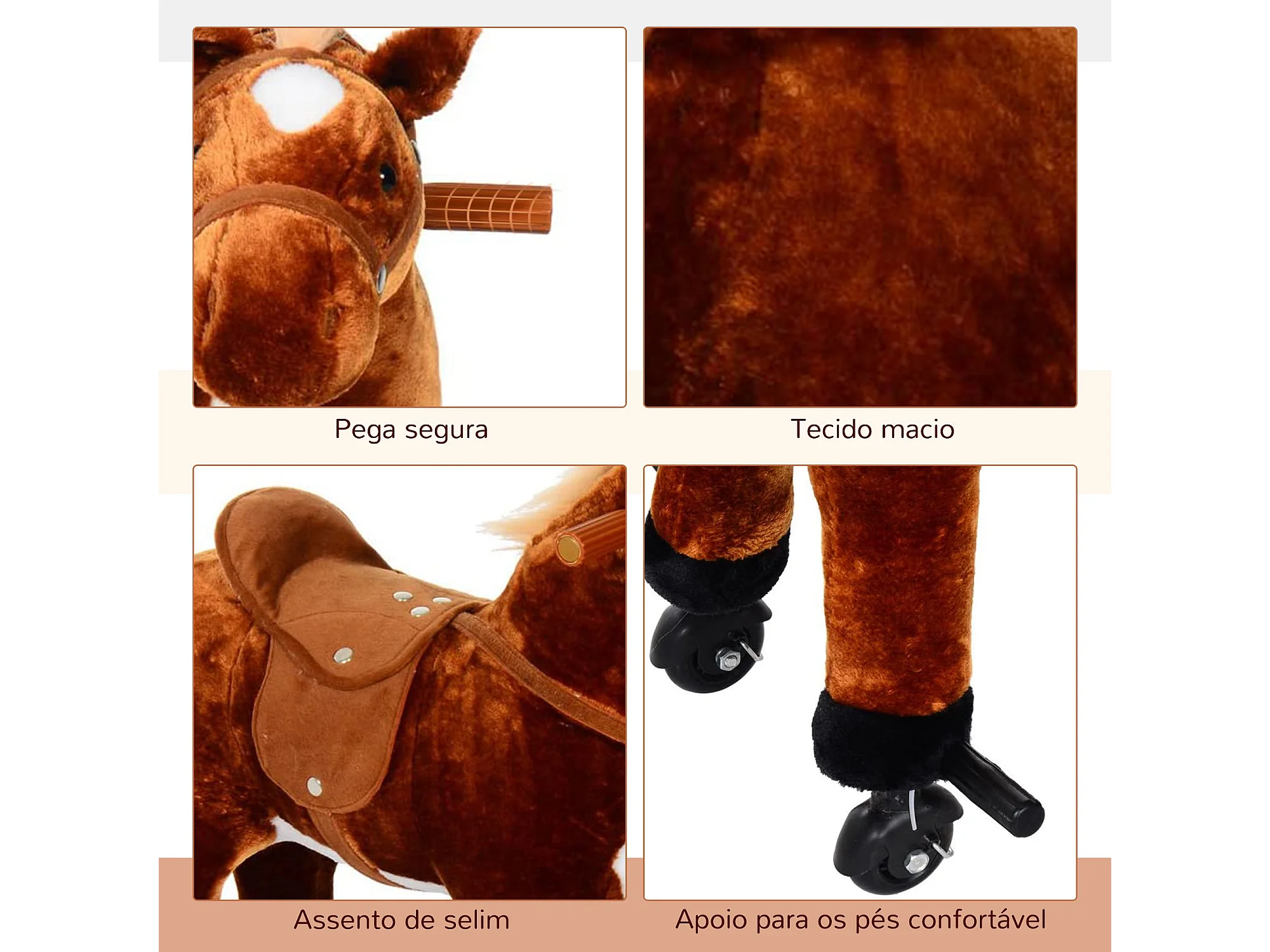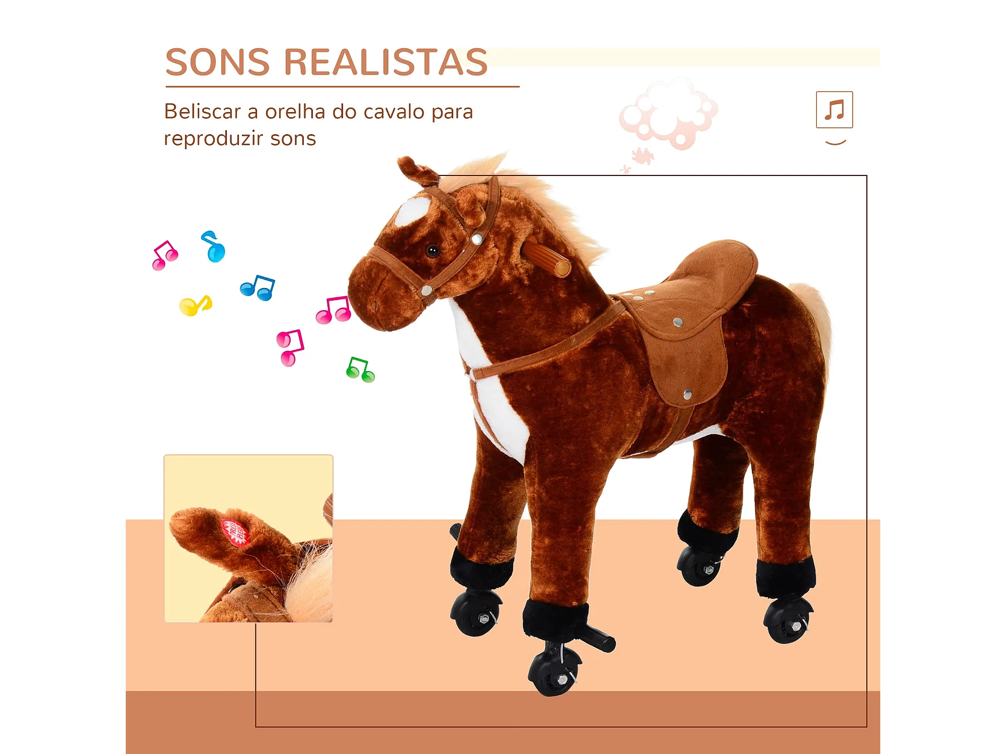 Cavalo de Brinquedo HOMCOM com Sons para Crianças a Partir de 3 Anos - Estrutura de Metal e Rodas