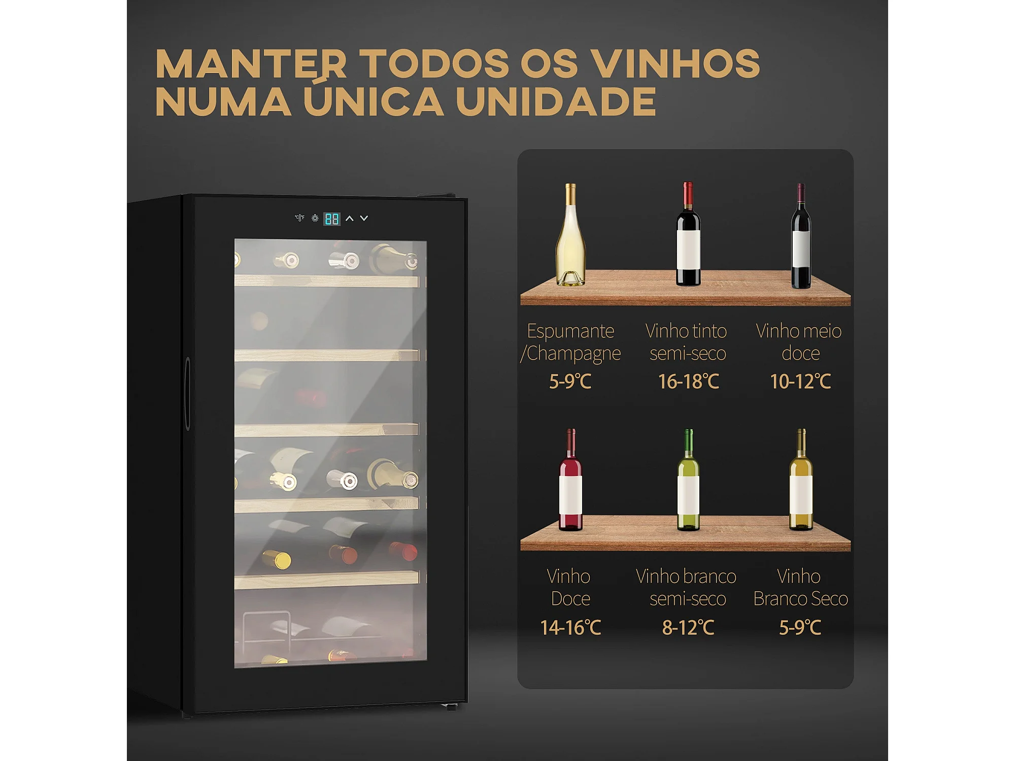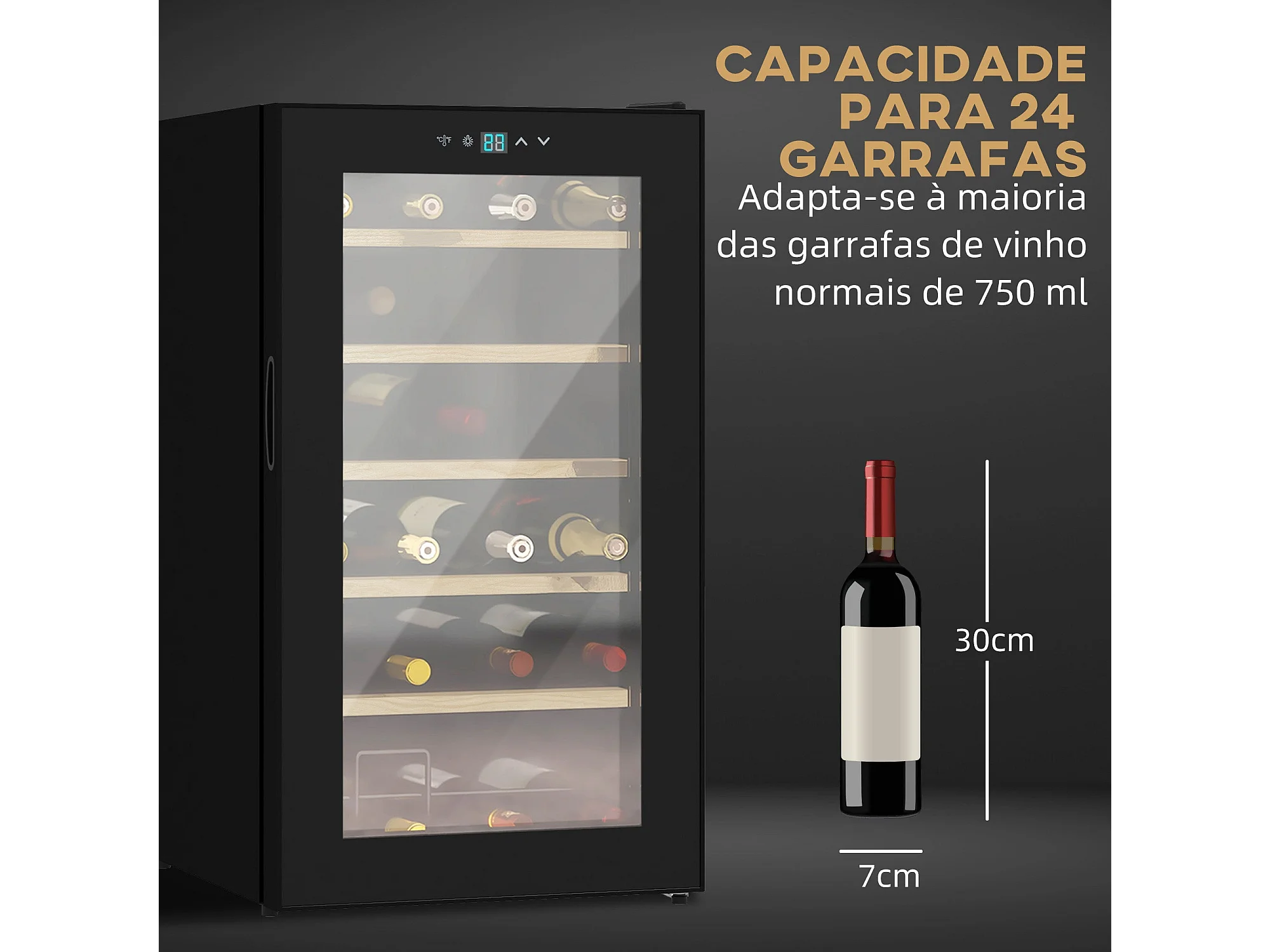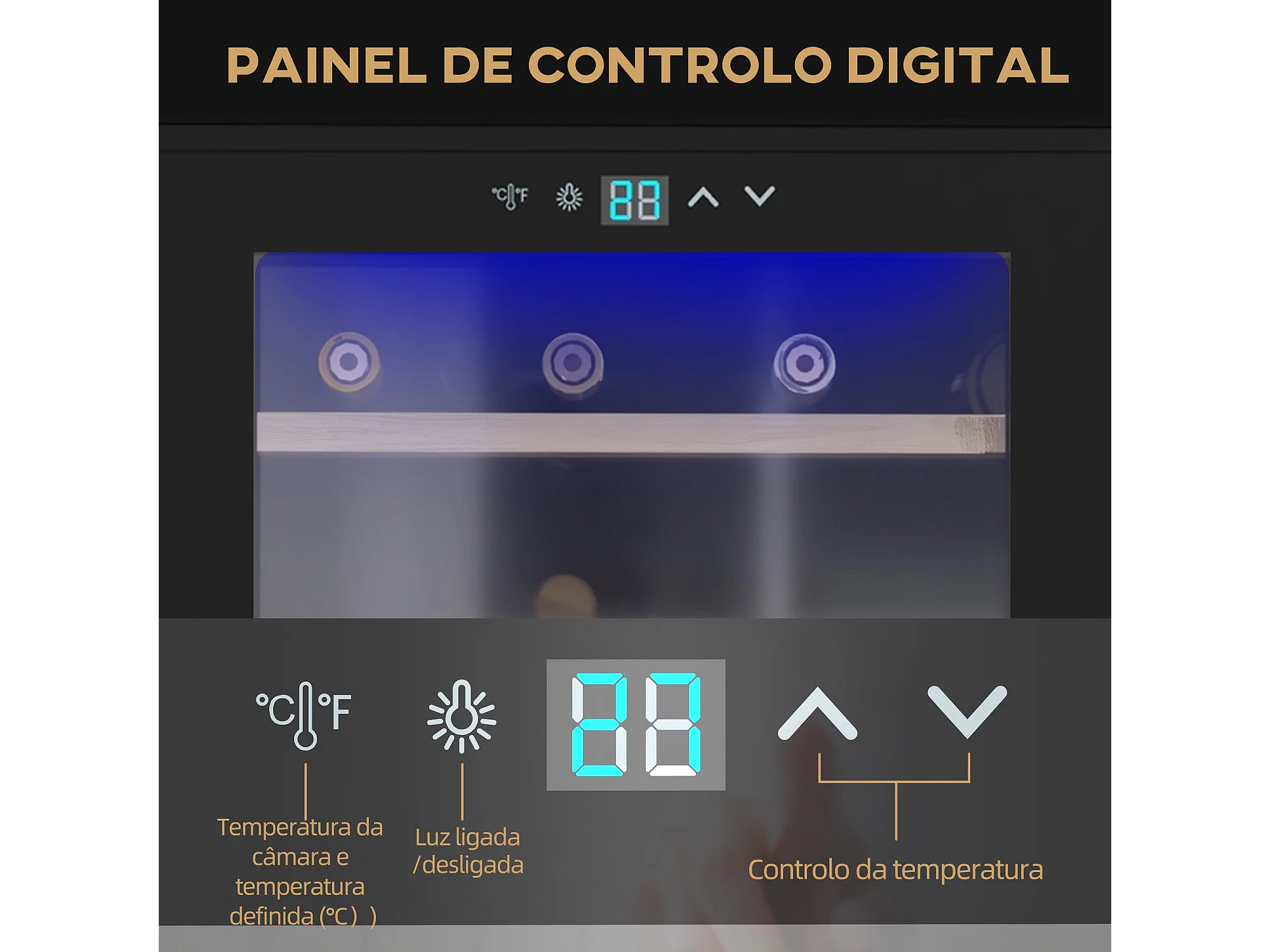 Cave de Vinho Moderna para 24 Garrafas com Controle Digital e Luz LED