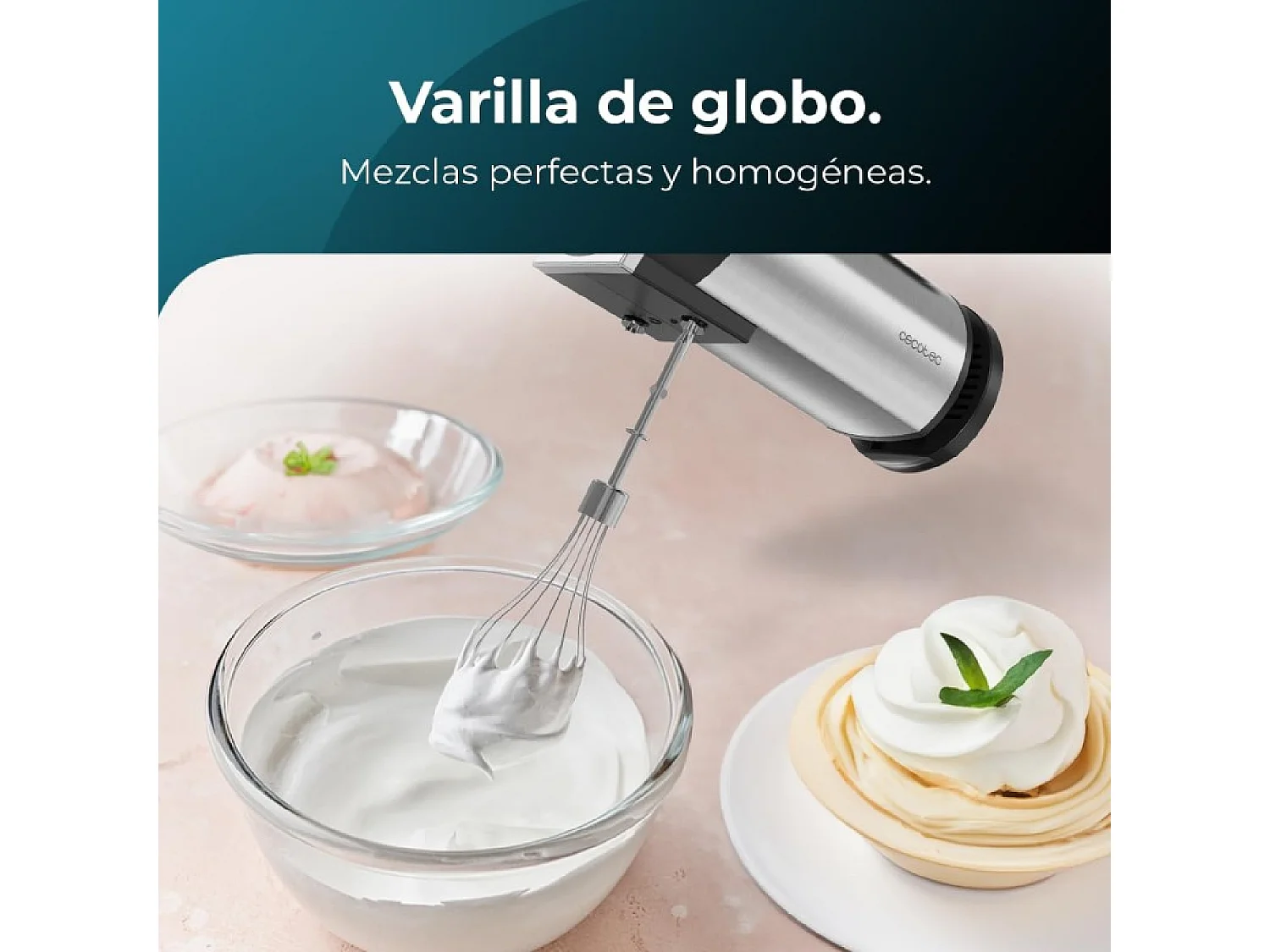 Cecotec Batedeira de varas com 500 W, 5 níveis de velocidade mais função Turbo e três acessório de aço inoxidável.