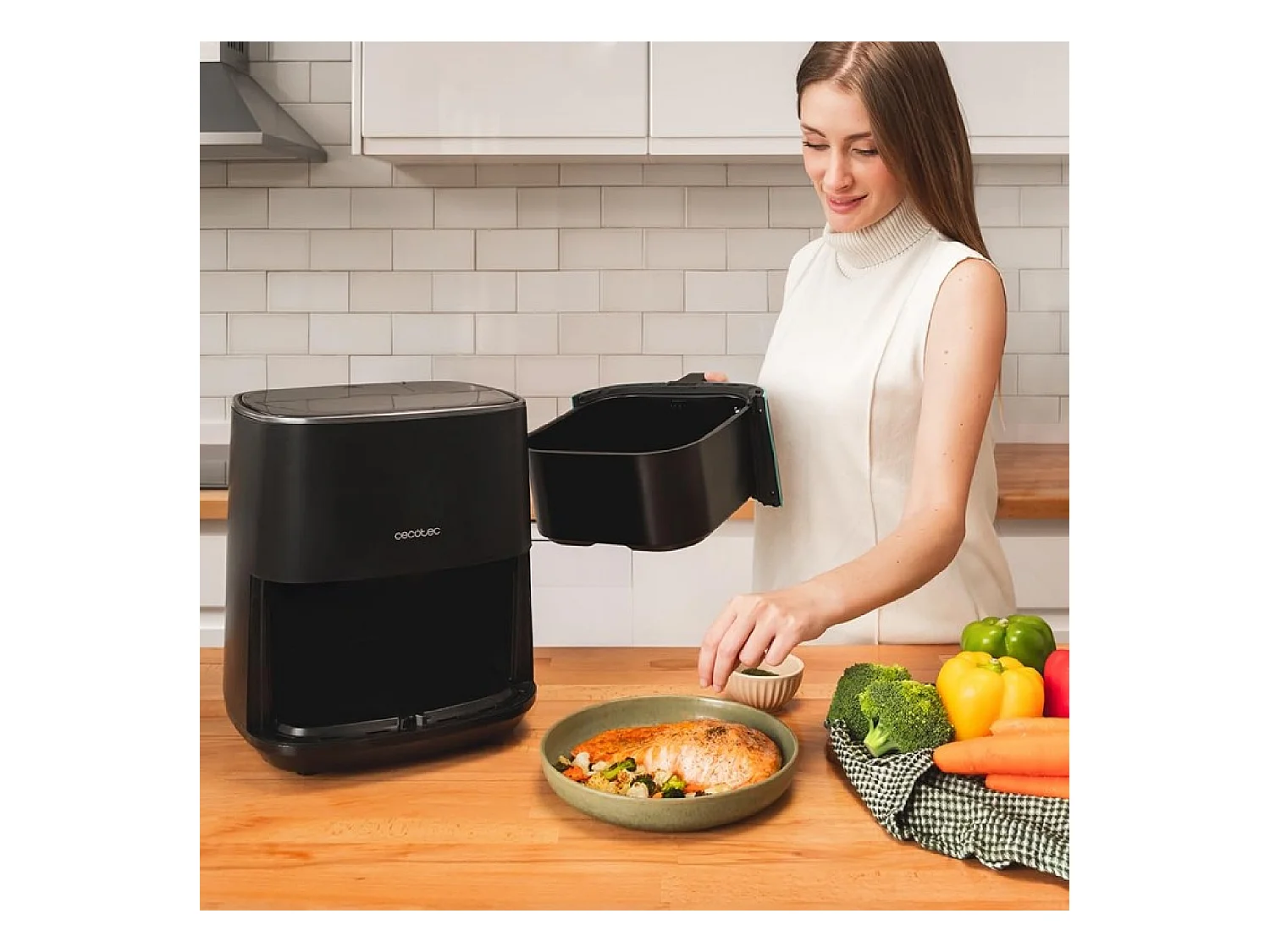Cecotec Fritadeira dietética digital de 1500 W, 5,5 l de capacidade, acabamentos em aço inoxidável e pacote de acessórios.