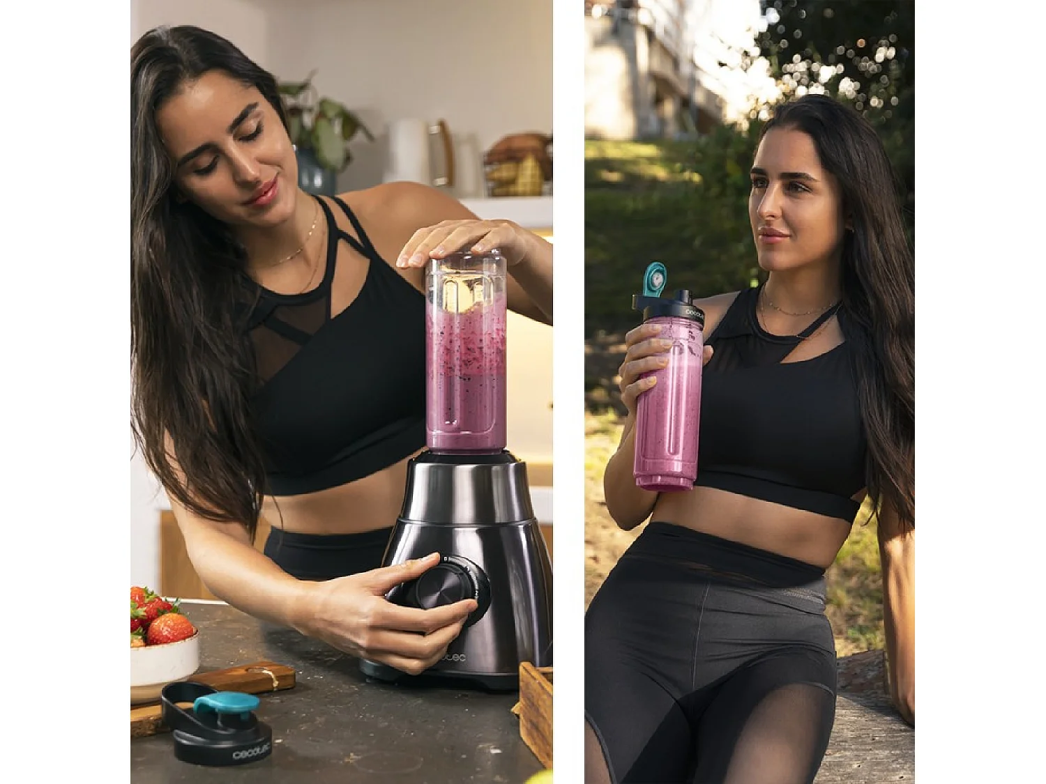 Cecotec Liquidificador americano de copo de 2500 W com lâmina de 6 folhas com revestimento de titânio preto, jarro termorresistente de 1,8 l e garrafa portátil.