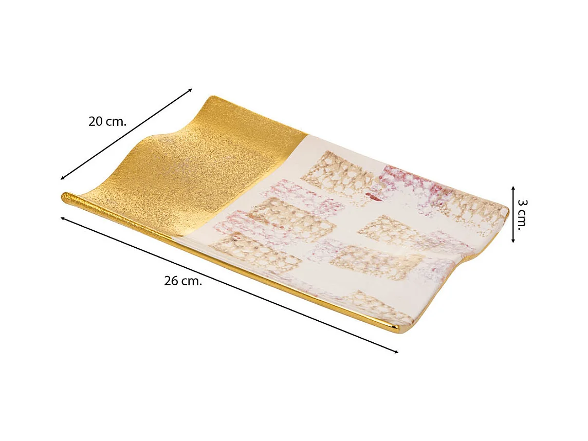 Peça central de cerâmica dourada 42,5x16,5x2,5