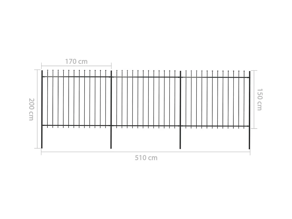 Cerca de jardim com topo em lanças 5,1x1,5 m aço preto PT181979