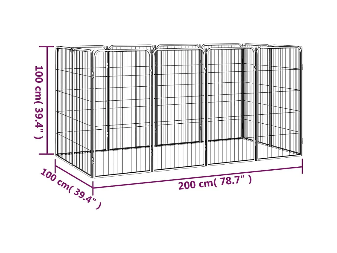 Cercadinho para cães 12 painéis 50 x 100cm aço revestido a pó preto 02_0043604